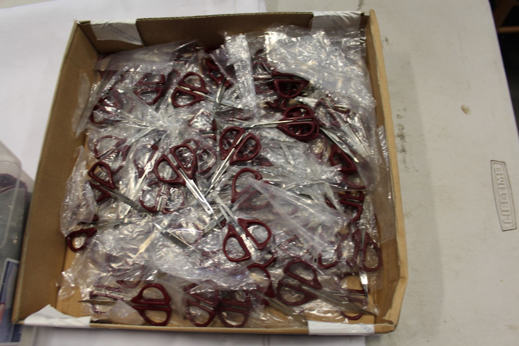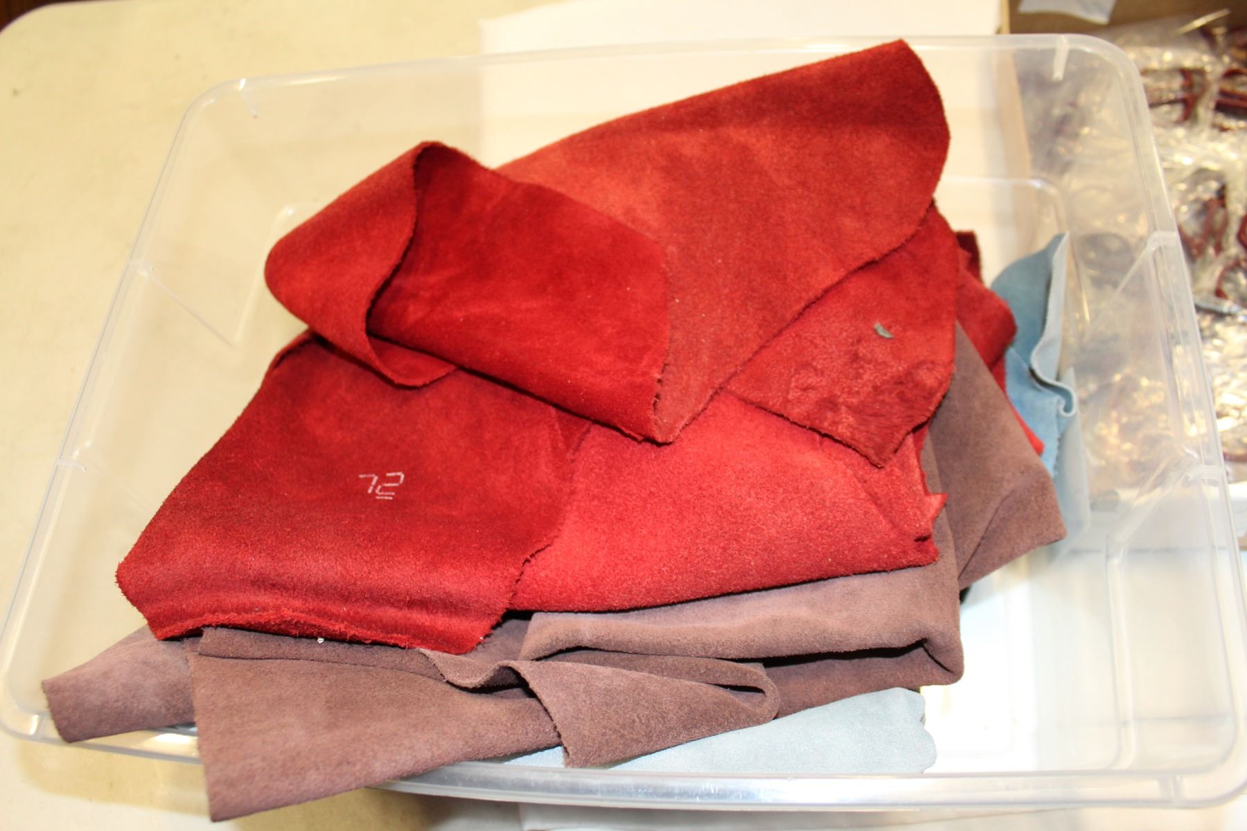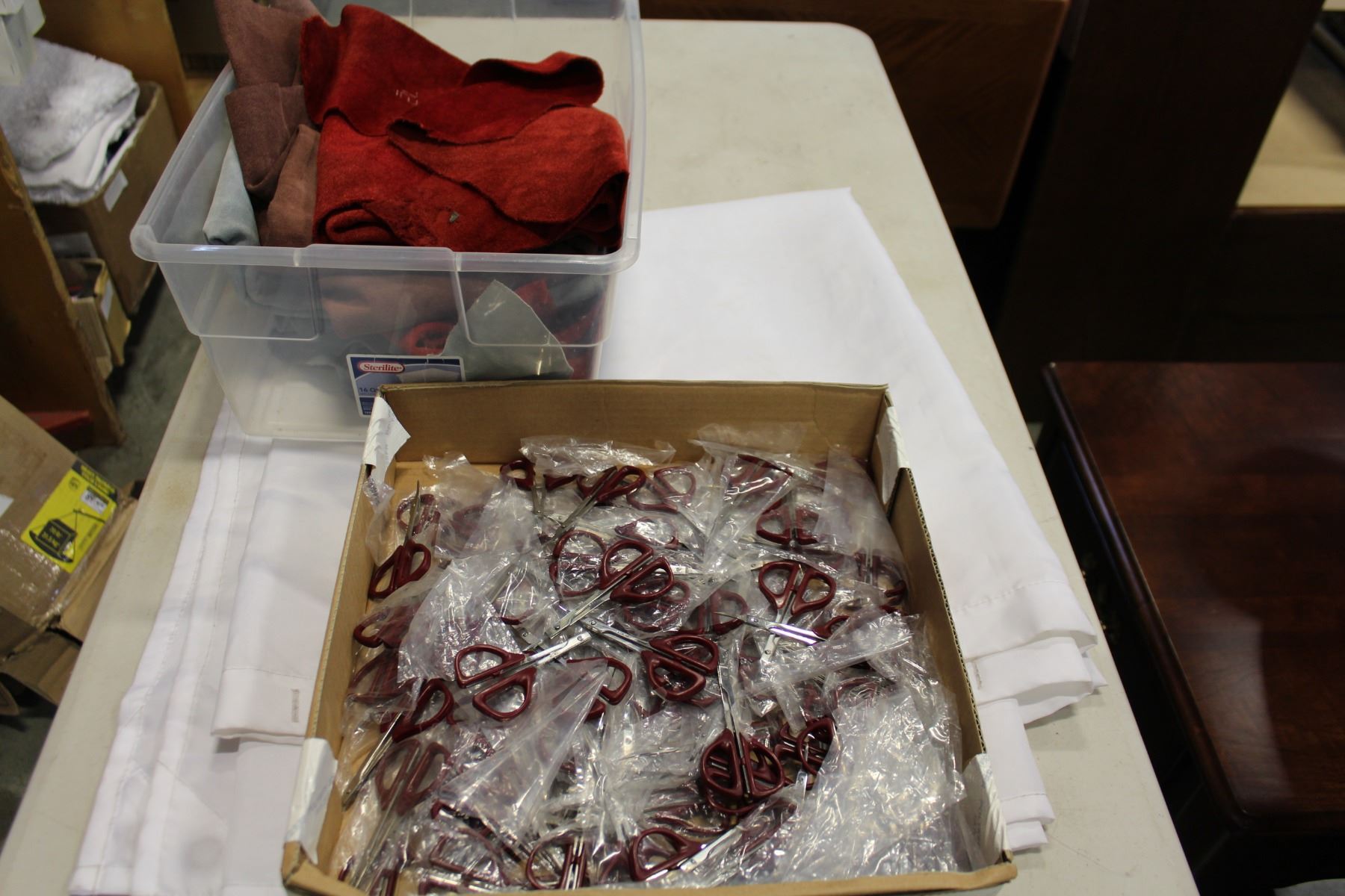 TRAY OF SMALL SCISSORS AND LEATHER PIECES