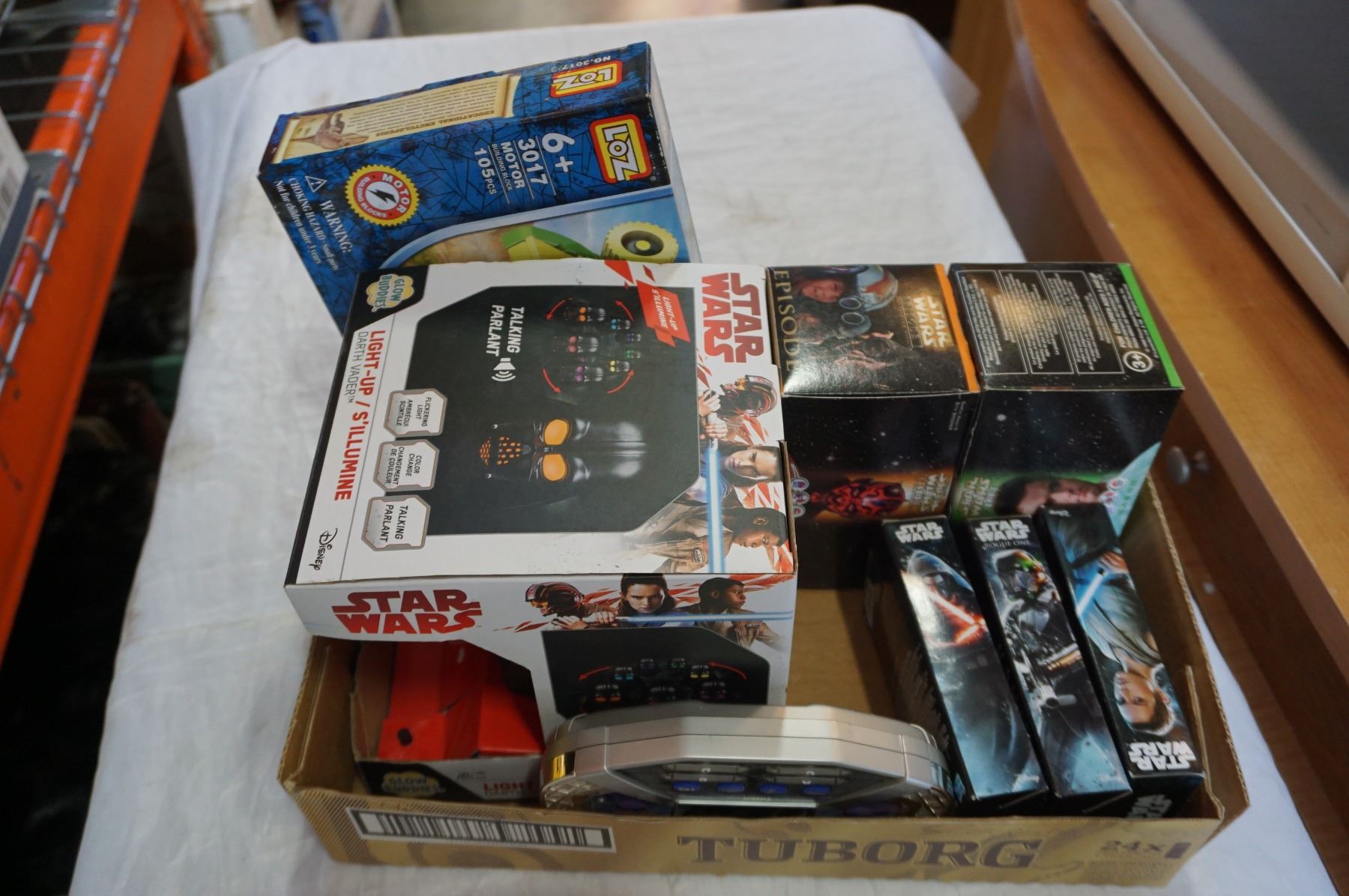 TRAY OF STAR WARS TOYS AND LOZ BRICKS