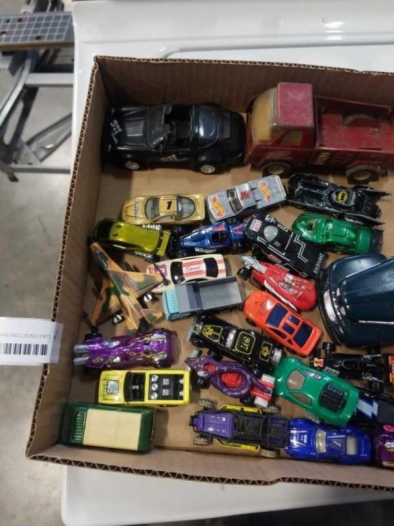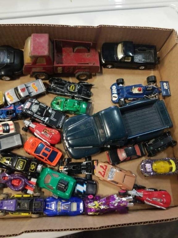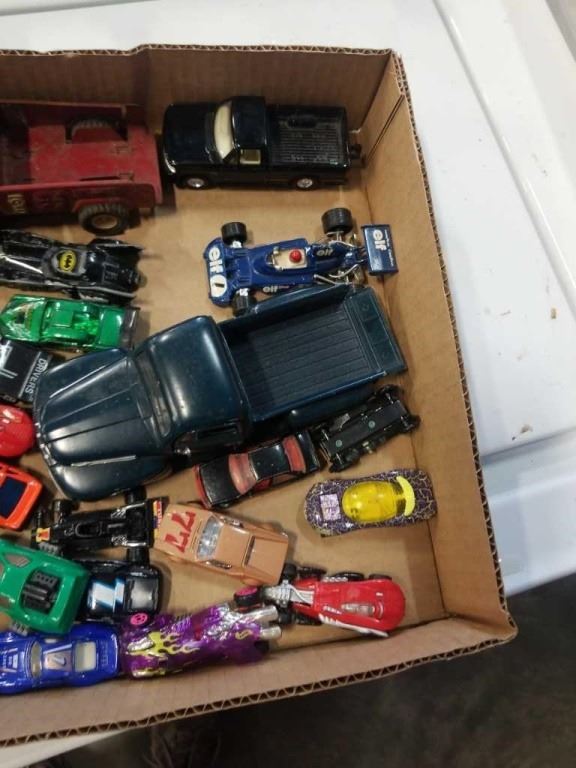 TRAY OF TOY CARS INCLUDING ERTL 1989 BATMOBILE, CORGI F1 RACECAR AND OTHERS