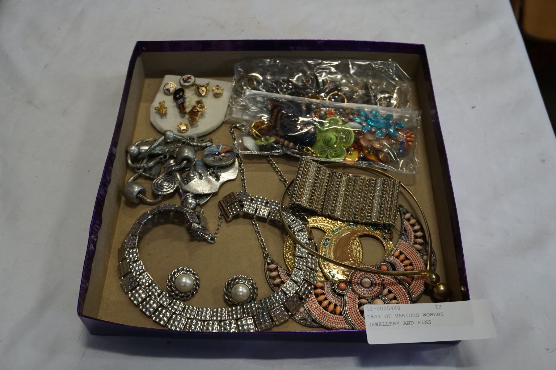 TRAY OF VARIOUS WOMENS JEWELLERY AND PINS