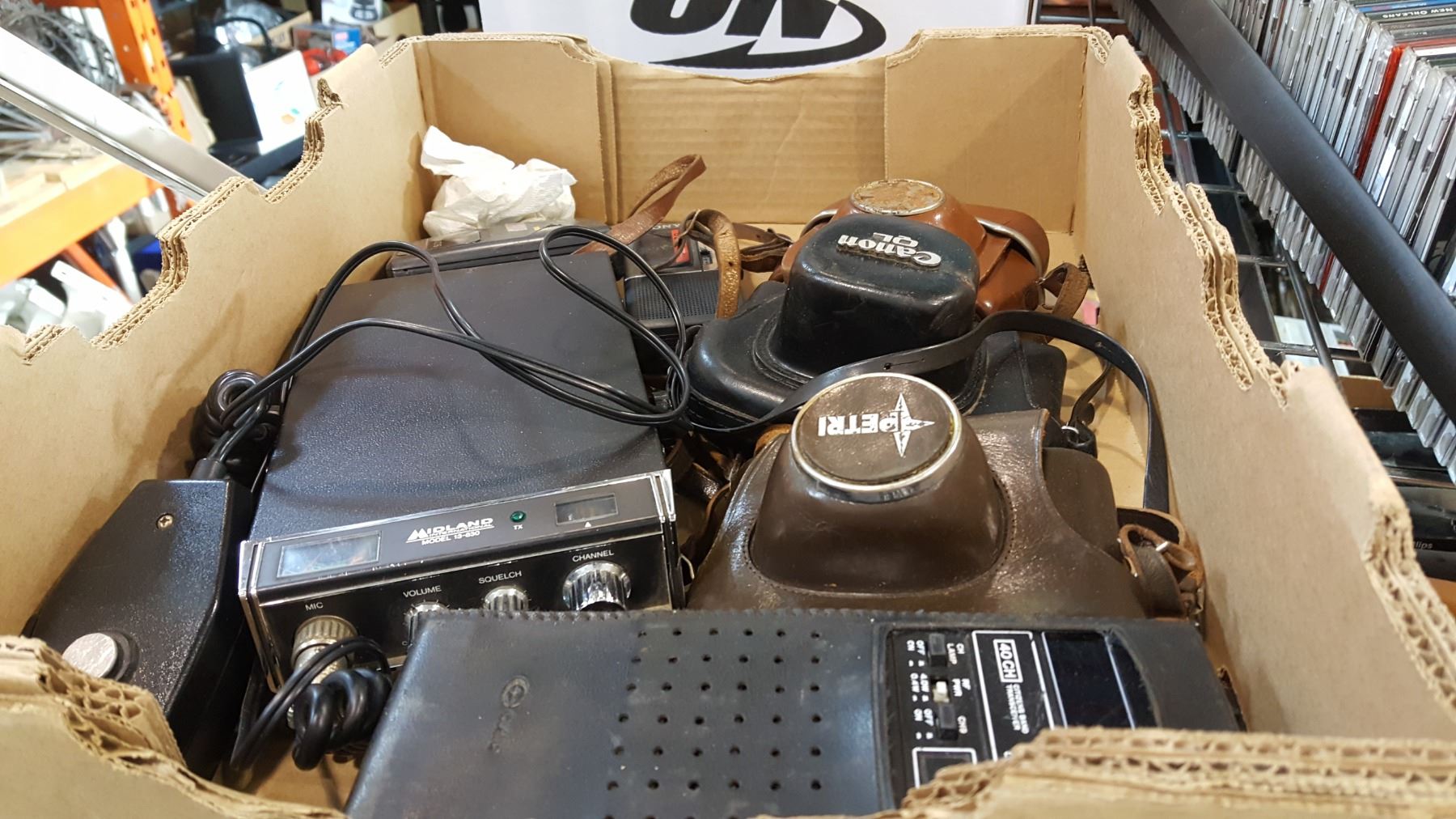 TRAY OF VINTAGE CAMERAS CB RADIO