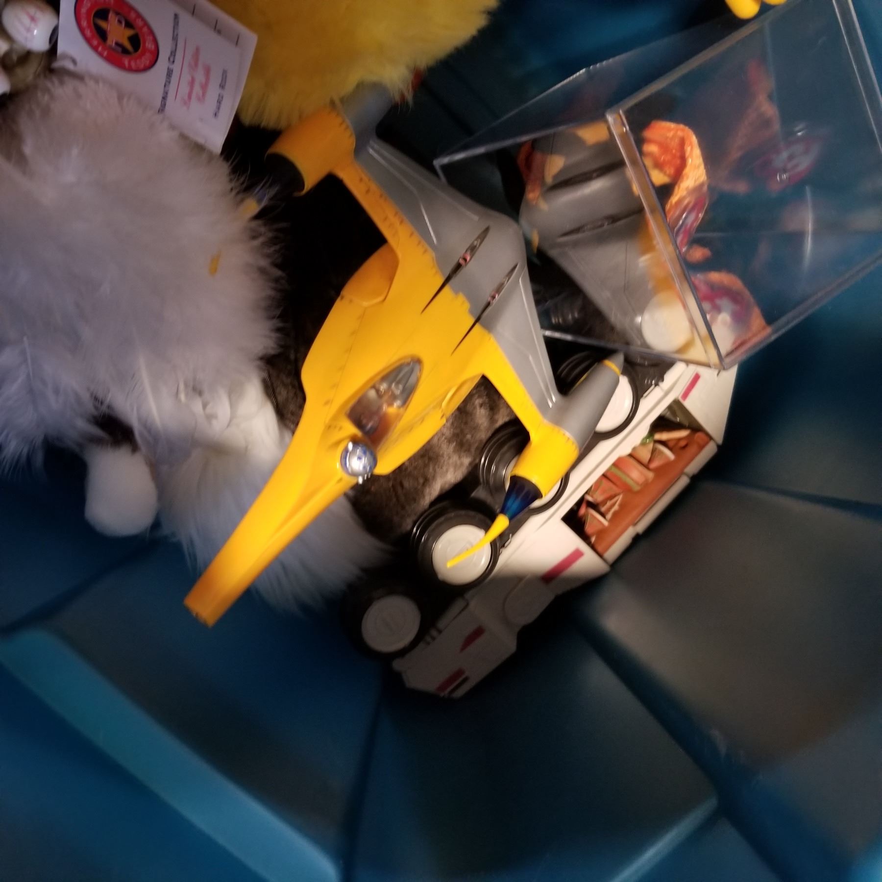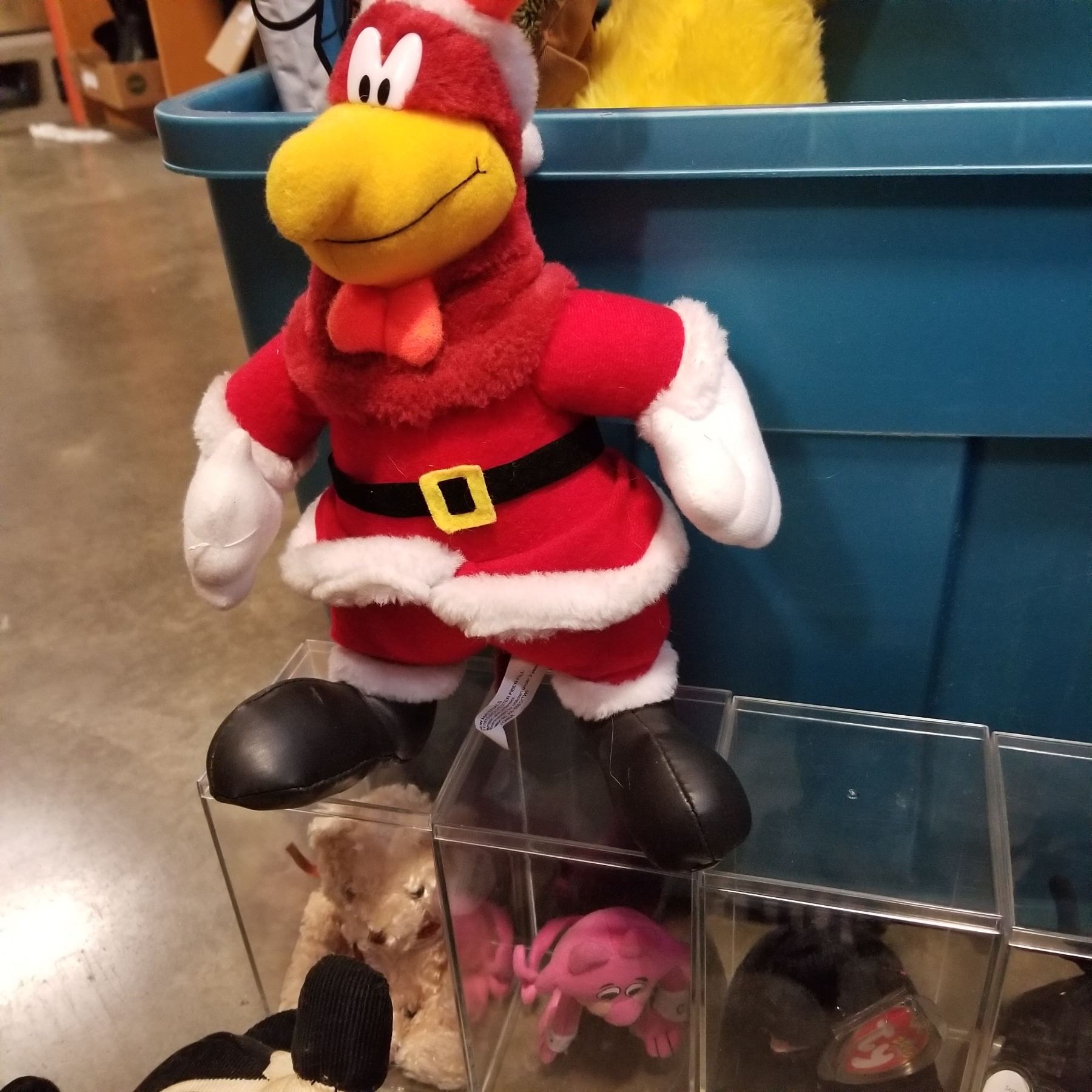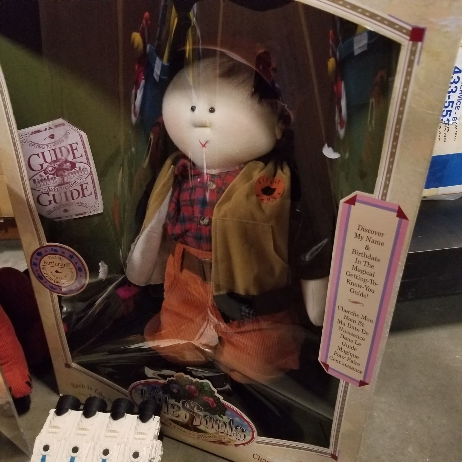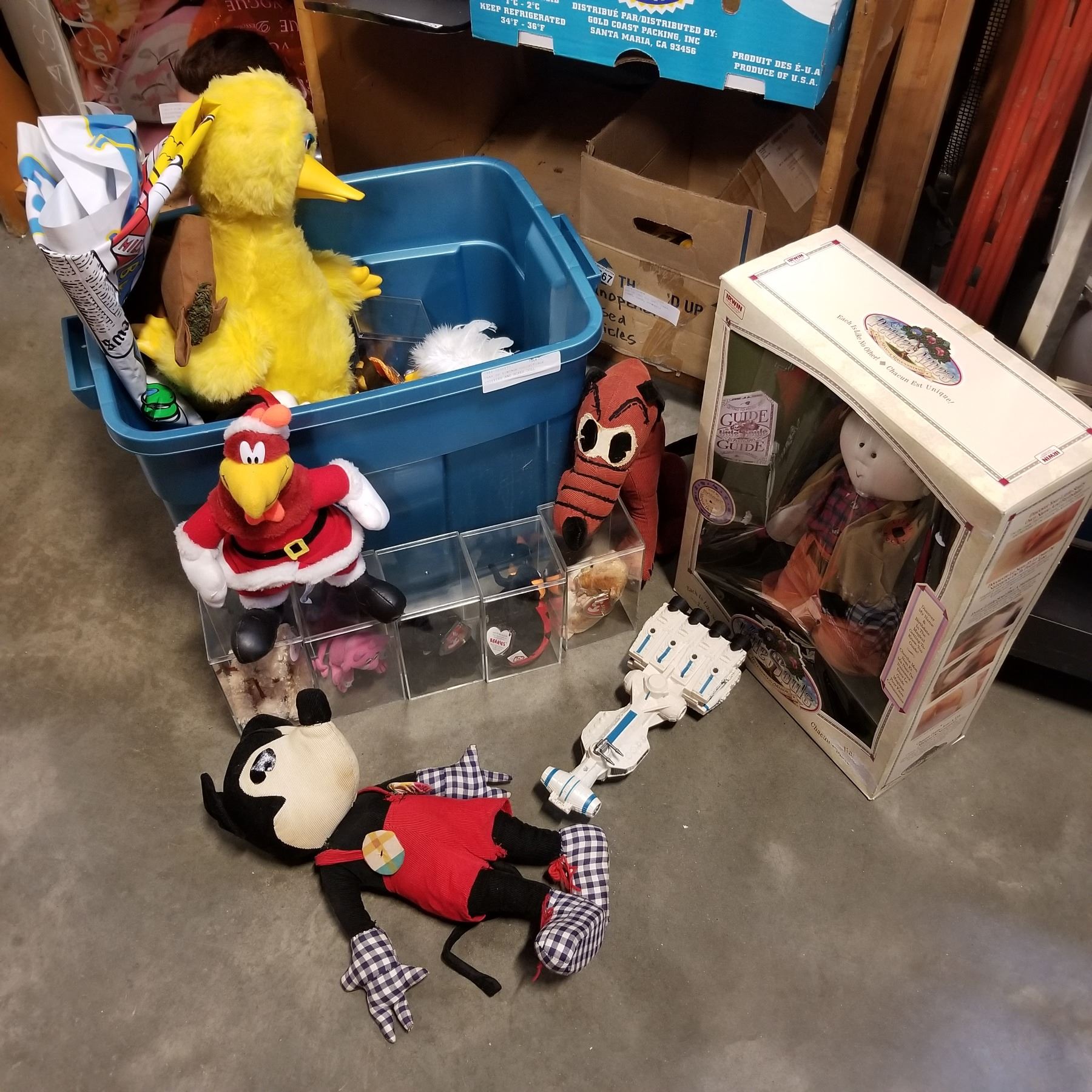 TRAY OF VINTAGE COLLECTIBLE STUFFIES AND BOXED DOLL