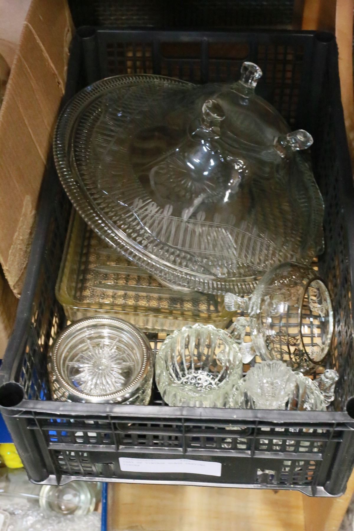 TRAY OF VINTAGE GLASS SERVING PIECES