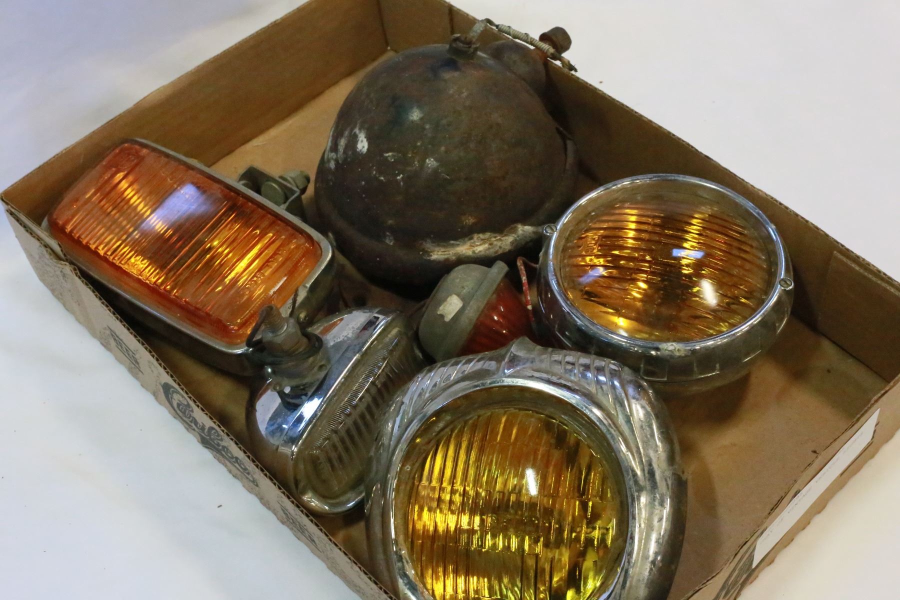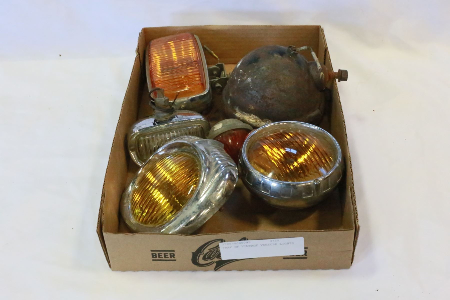 TRAY OF VINTAGE VEHICLE LIGHTS