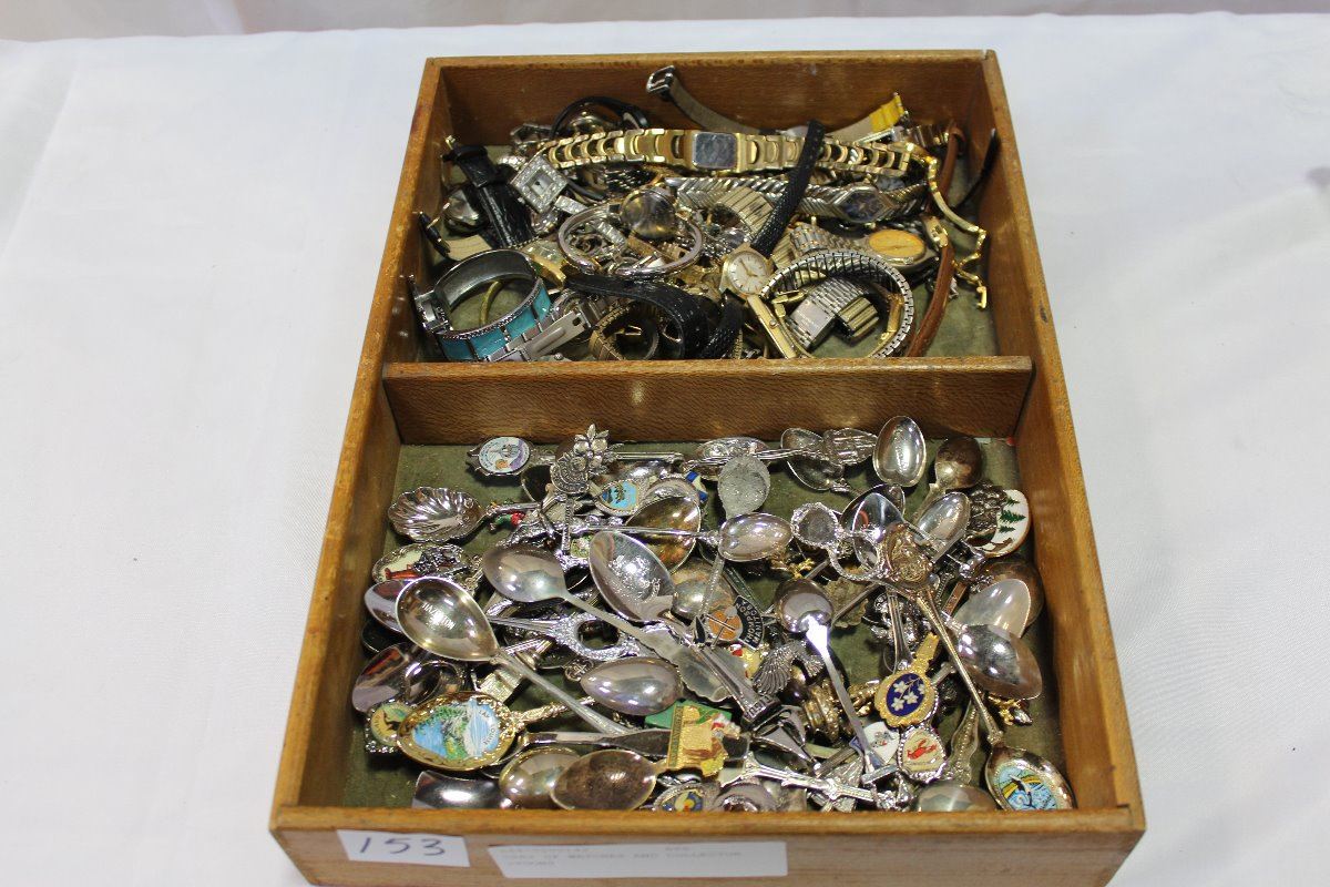 TRAY OF WATCHES AND COLLECTOR SPOONS