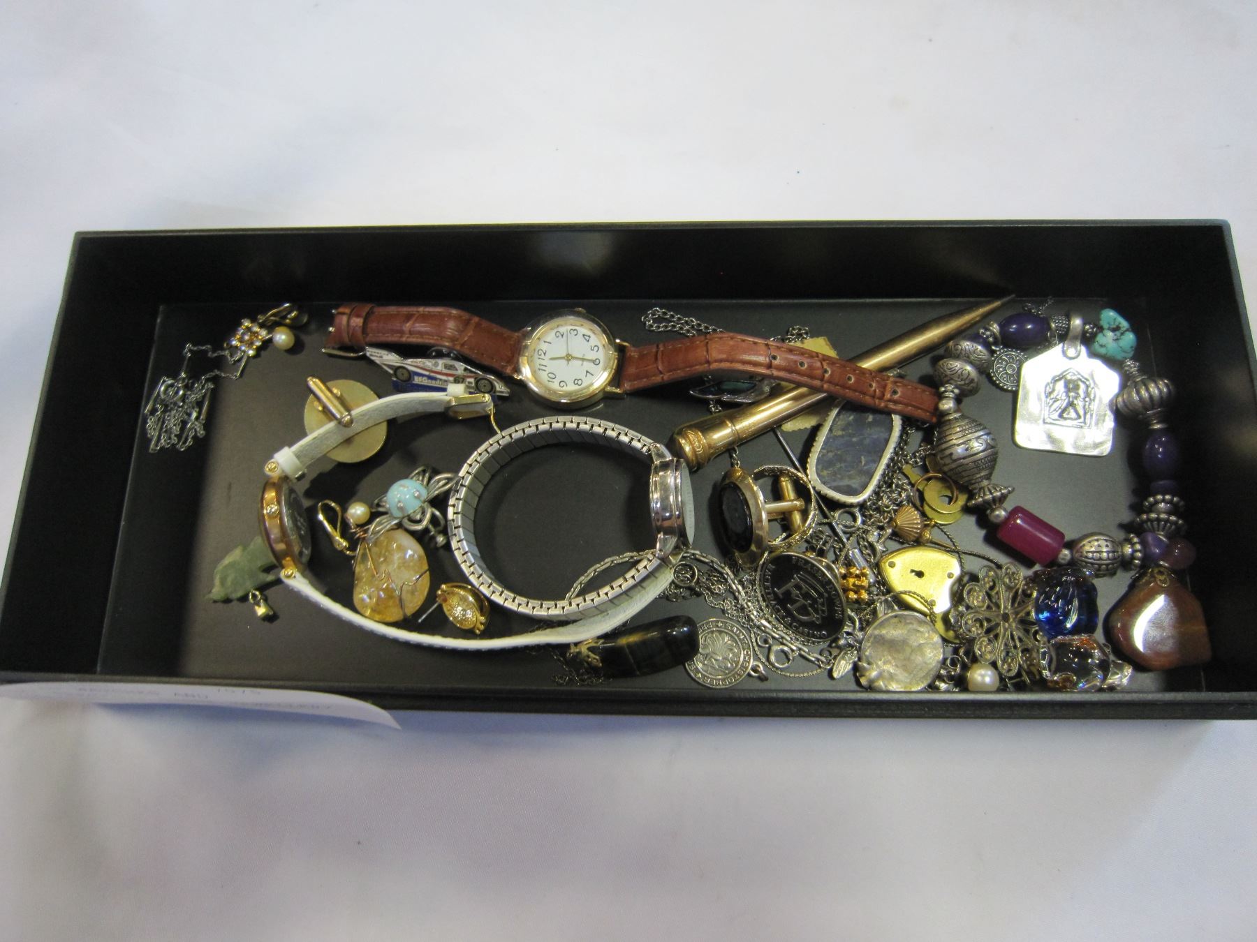 TRAY OF WATCHES AND SEMI-PRECIOUS STONE JEWELLERY