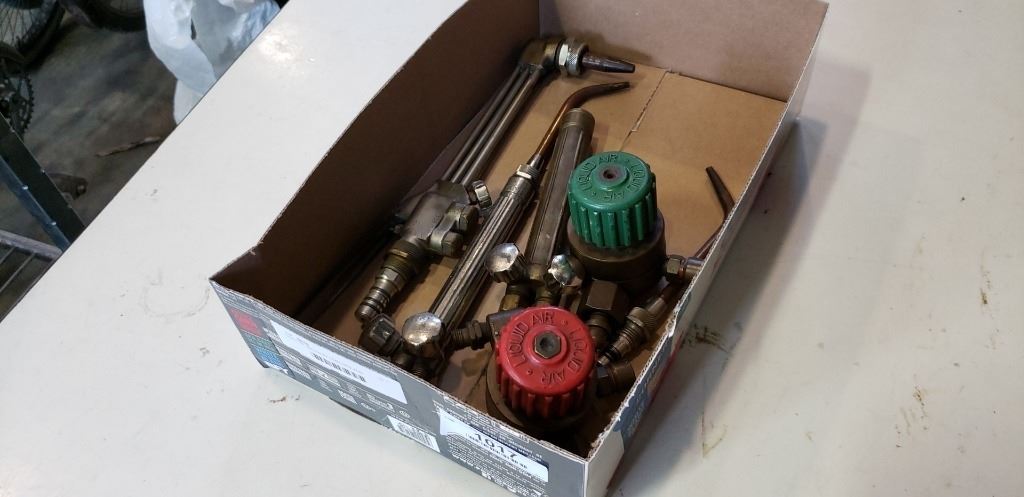 TRAY OF WELDING TORCHES AND REGULATORS