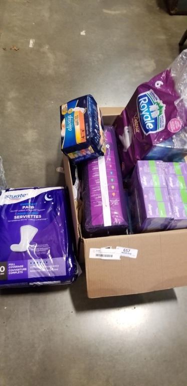 TRAY OF WOMENS PRODUCTS INCLUDING PADS, TISSUES