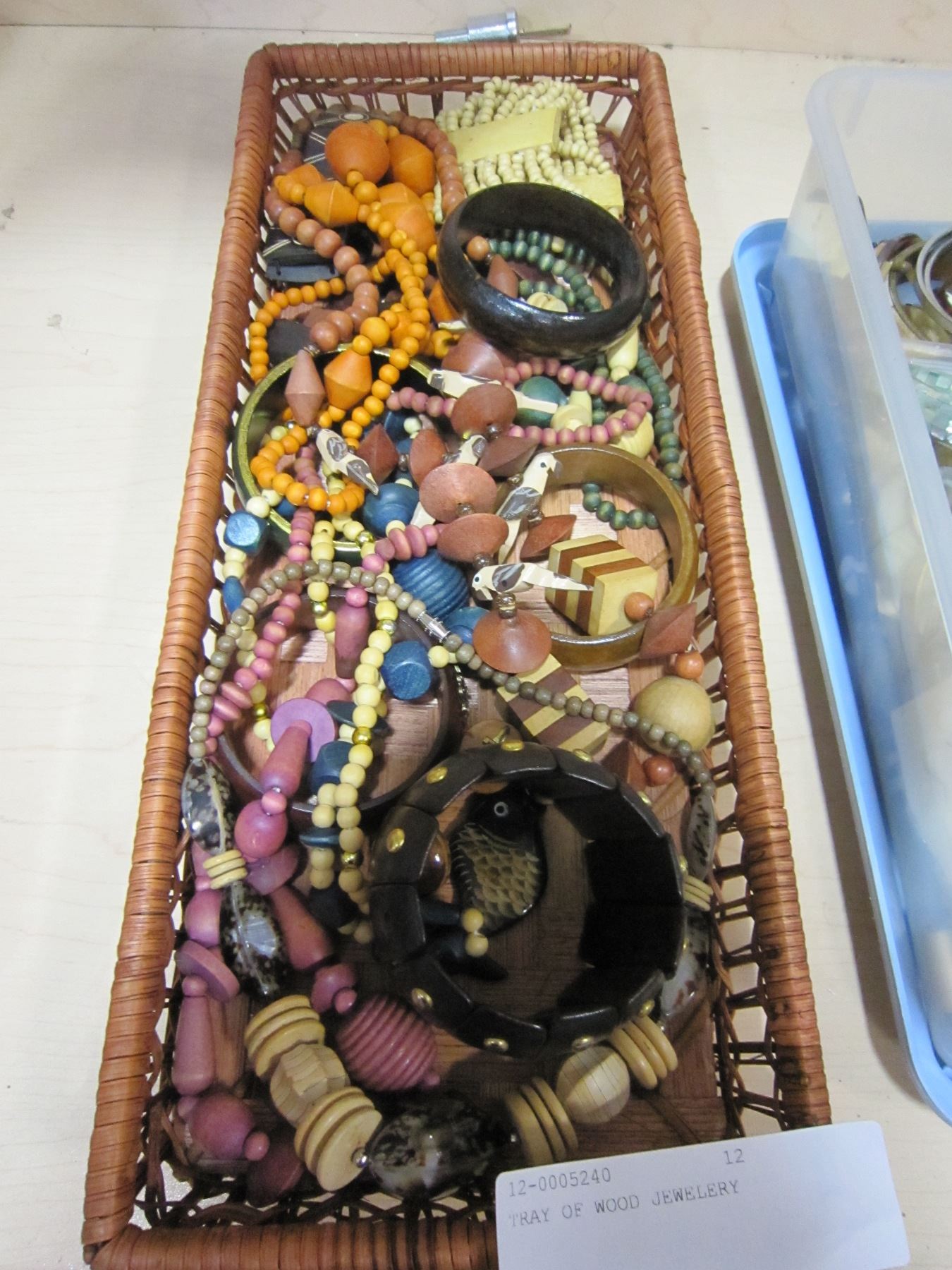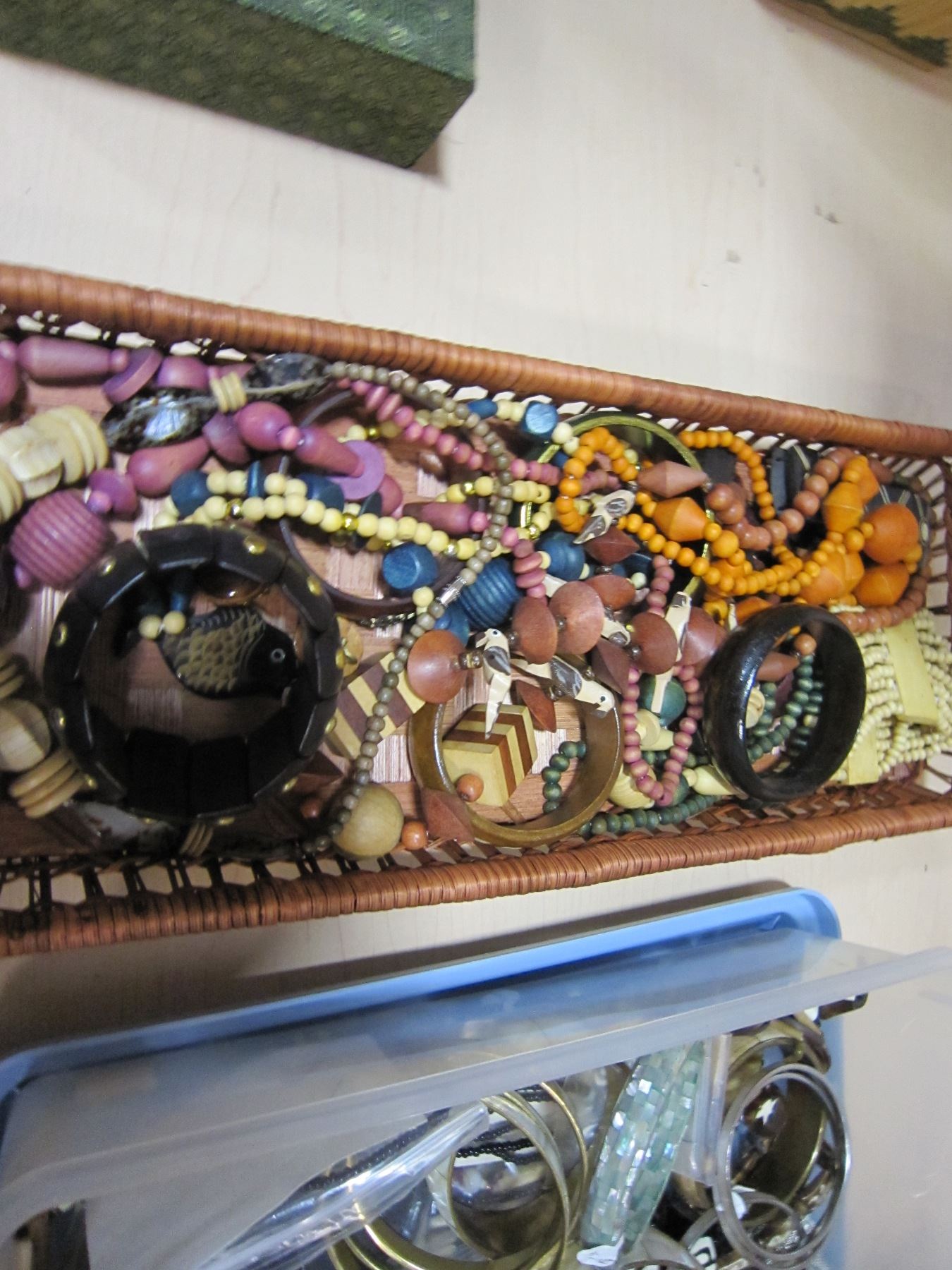 TRAY OF WOOD JEWELERY