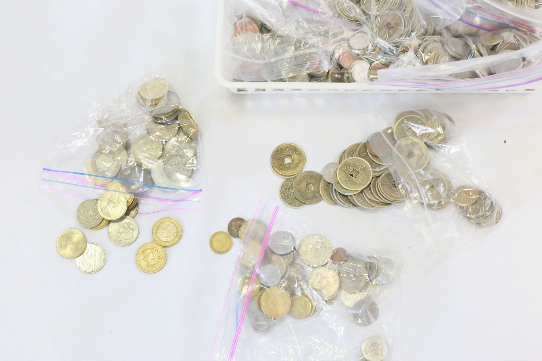 TRAY OF WORLD COINS
