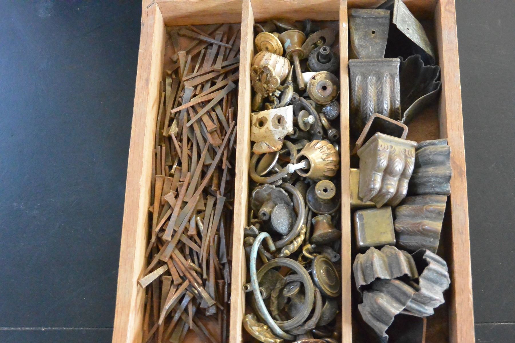 TRAY WITH HAND FORGED NAILS AND VINTAGE HARDWARE