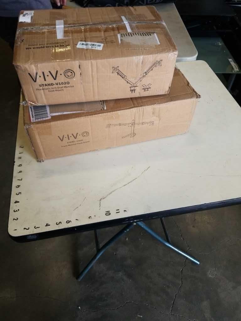 TRIPLE MONITOR DESK STAND AND PNEUMATIC ARM DUAL MONITOR DESK MOUNT