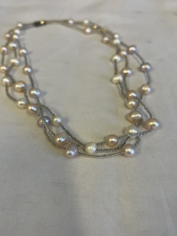 TRIPLE STRAND GENUINE PEARLS NECKLACE