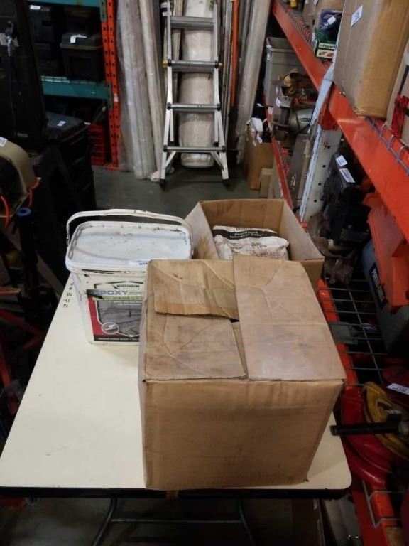 TUB OF ASPHALT EPOXY, BAXTER POWDER AND ECONOFIL POWDER
