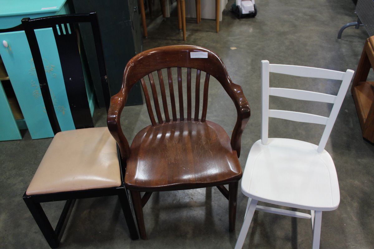 TUBCHAIR AND TWO PAINTED DINING CHAIRS