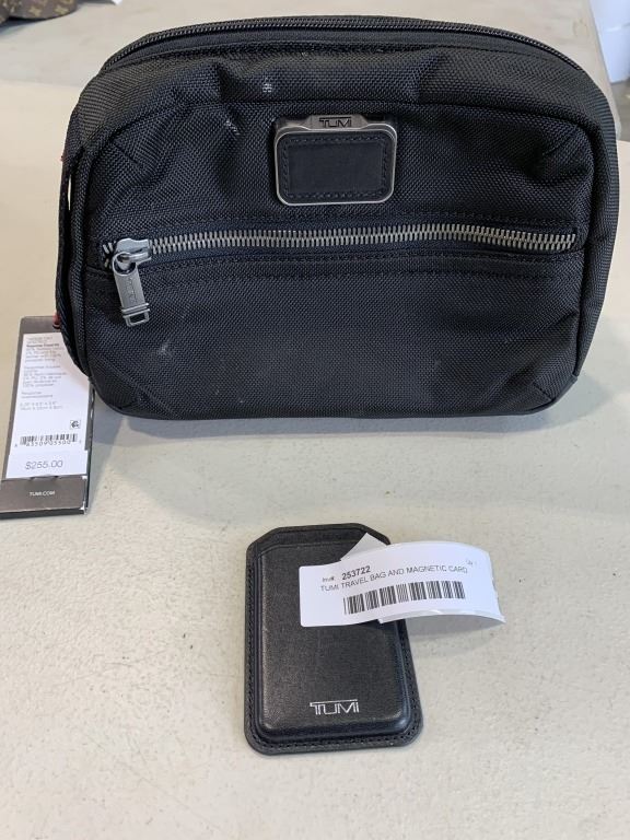 TUMI TRAVEL BAG AND MAGNETIC CARD HOLDER