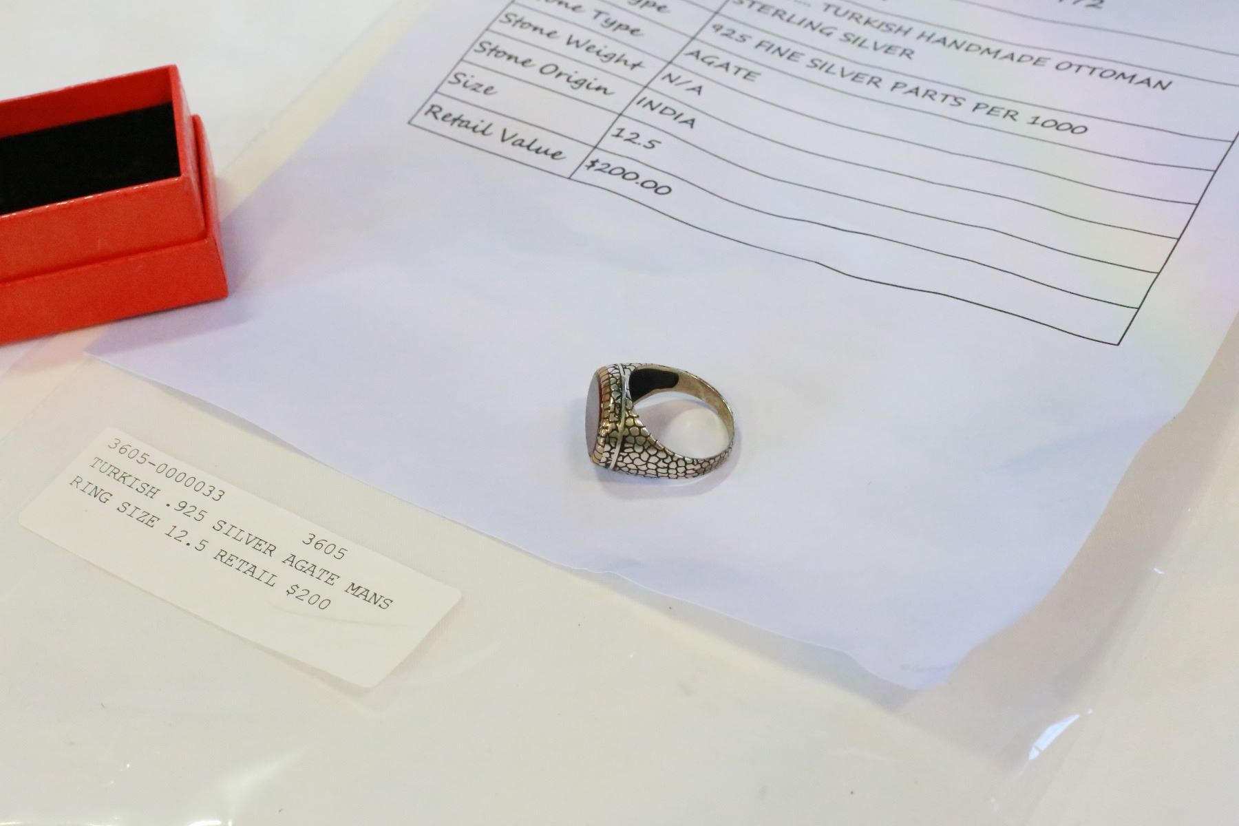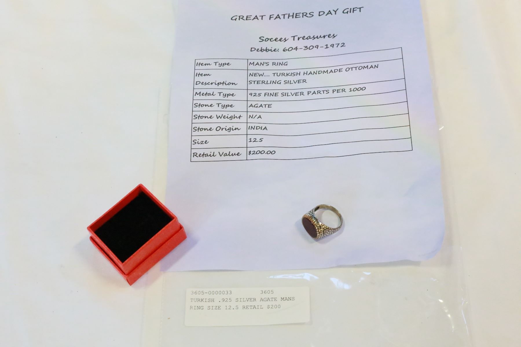 TURKISH .925 SILVER AGATE MANS RING SIZE 12.5 RETAIL $200