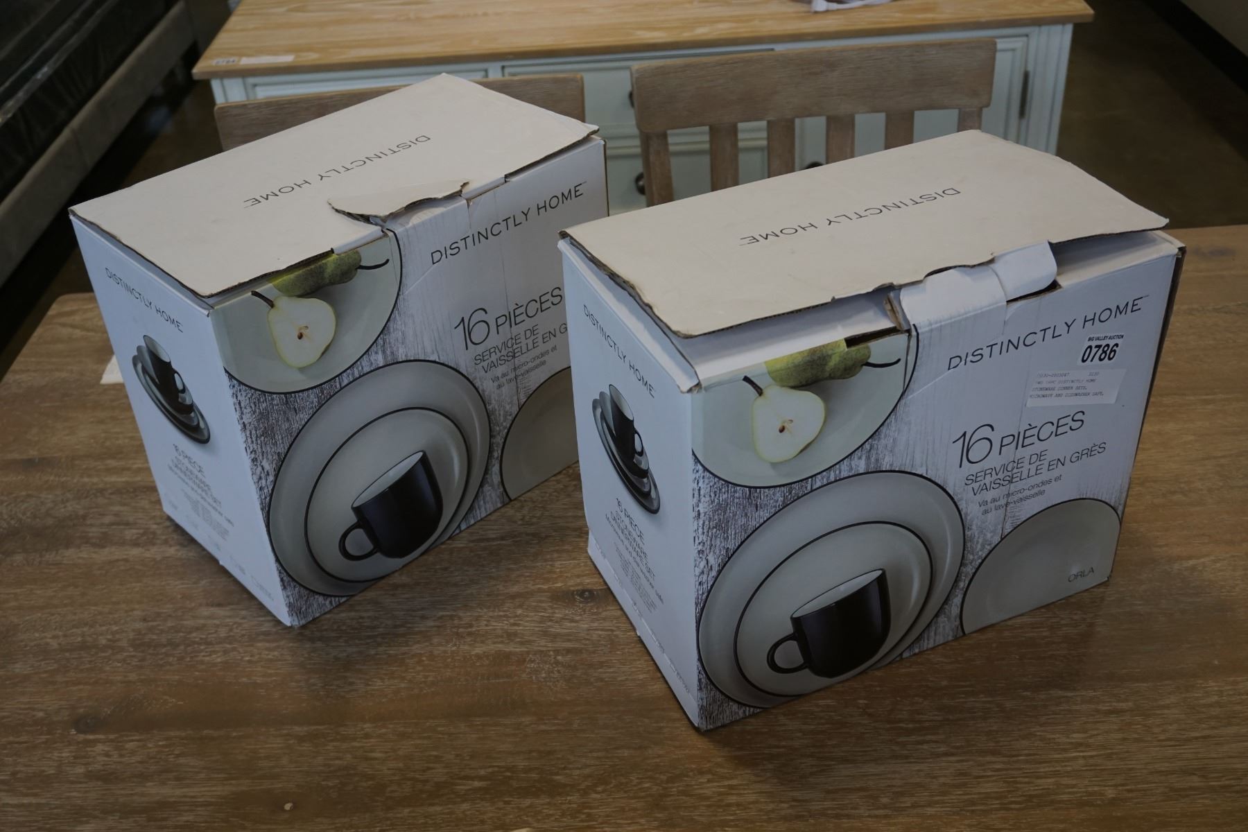 TWO 16PC DISTINCTLY HOME STONEWARE DINNER SETS, MICROWAVE AND DISHWASHER SAFE, MISSING 3 PLATES