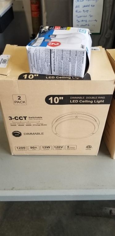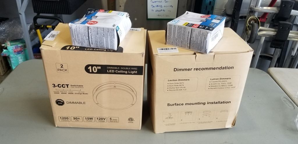 TWO 2 PACK 10" DIMMABLE DOUBLE RING LED CEILING LIGHT AND TWO 2 PACK LED 100W LIGHTS