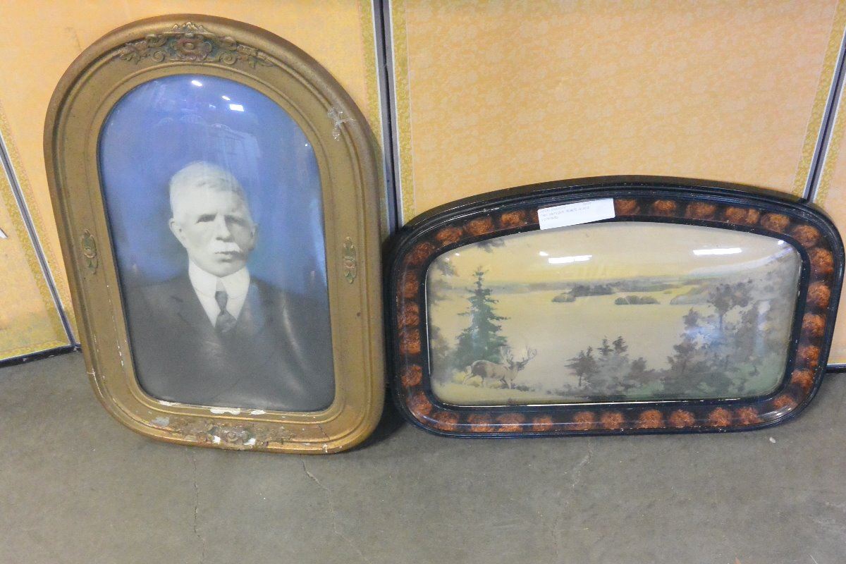TWO ANTIQUE BOWED GLASS PICTURES