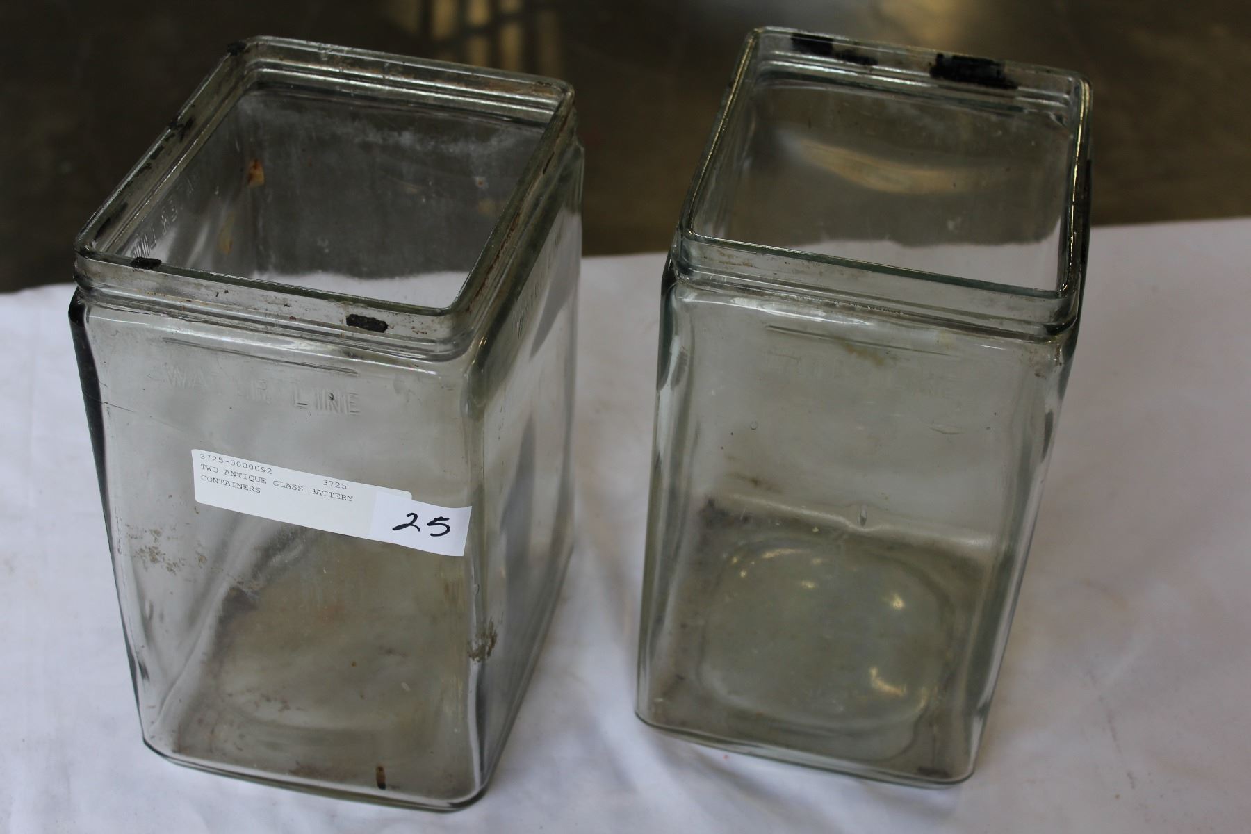 TWO ANTIQUE GLASS BATTERY CONTAINERS
