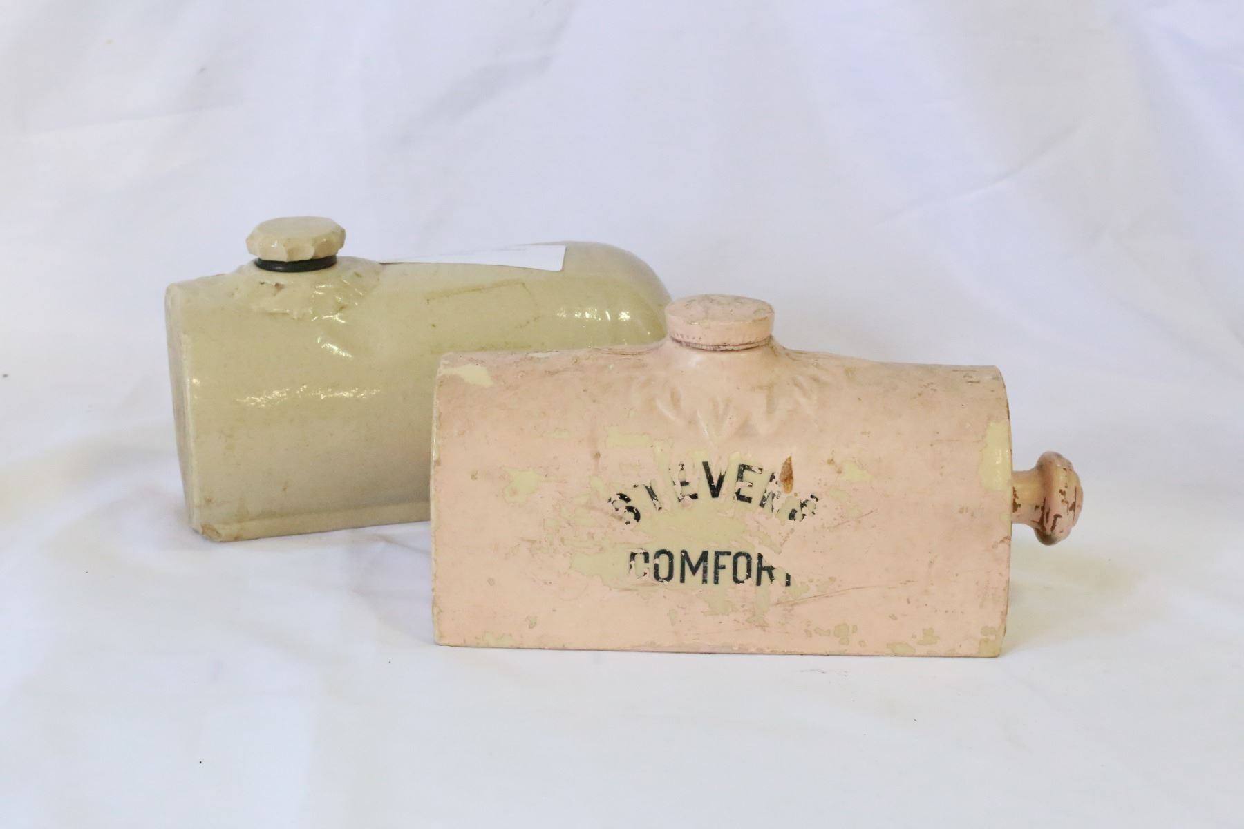 TWO ANTIQUE POTTERY COMFORT HOT WATER BOTTLES