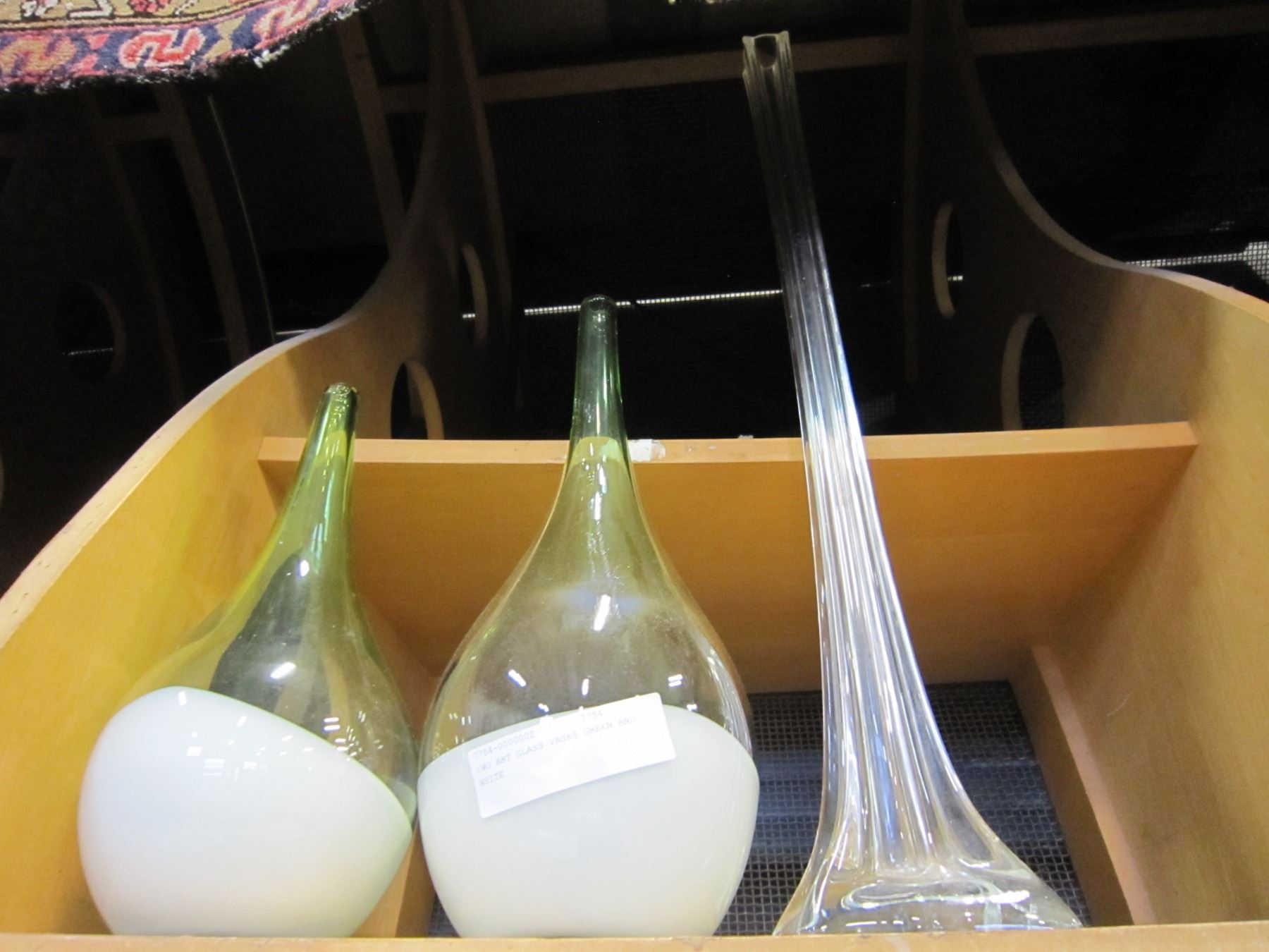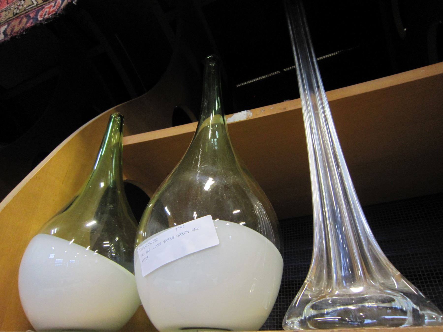 TWO ART GLASS VASES GREEN AND WHITE AND CLEAR VASE