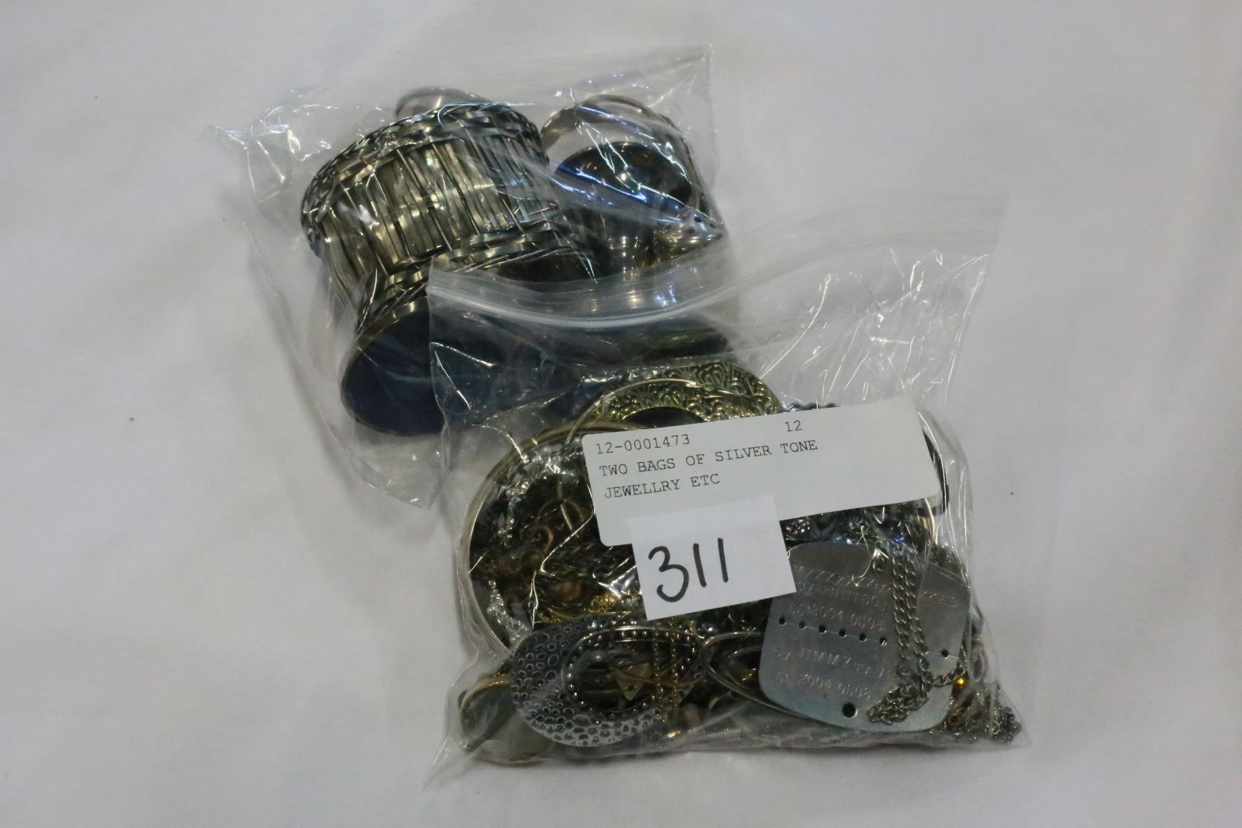 TWO BAGS OF SILVER TONE JEWELLRY ETC