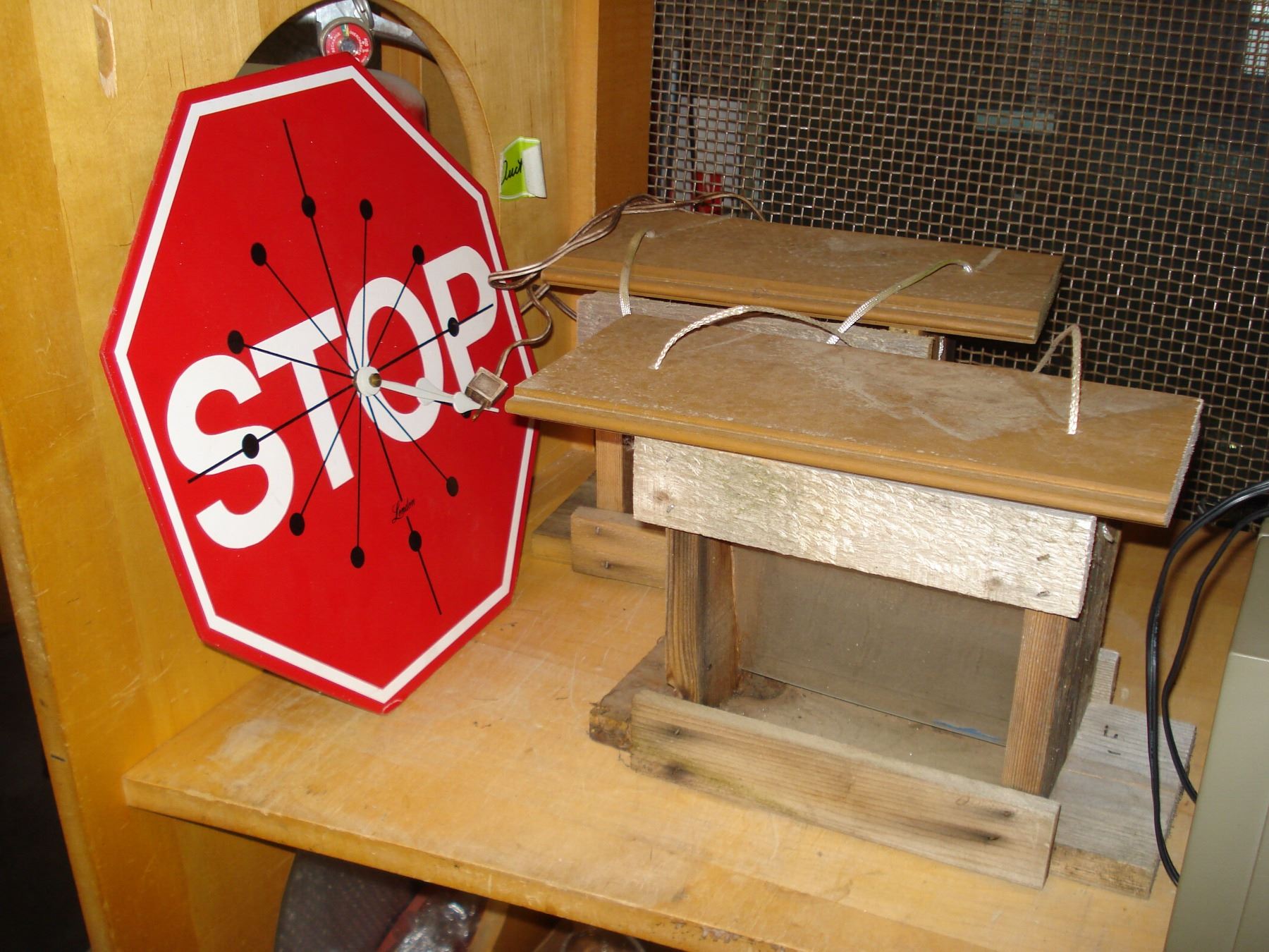 TWO BIRD HOUSES AND STOP MOTIF ELECTRIC CLOCK