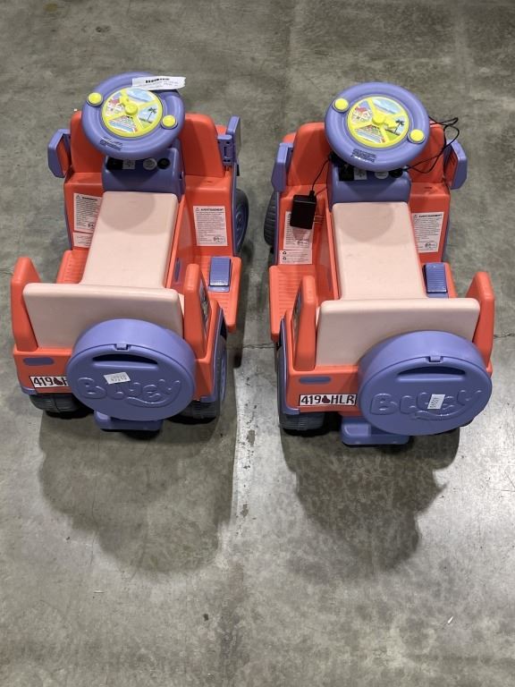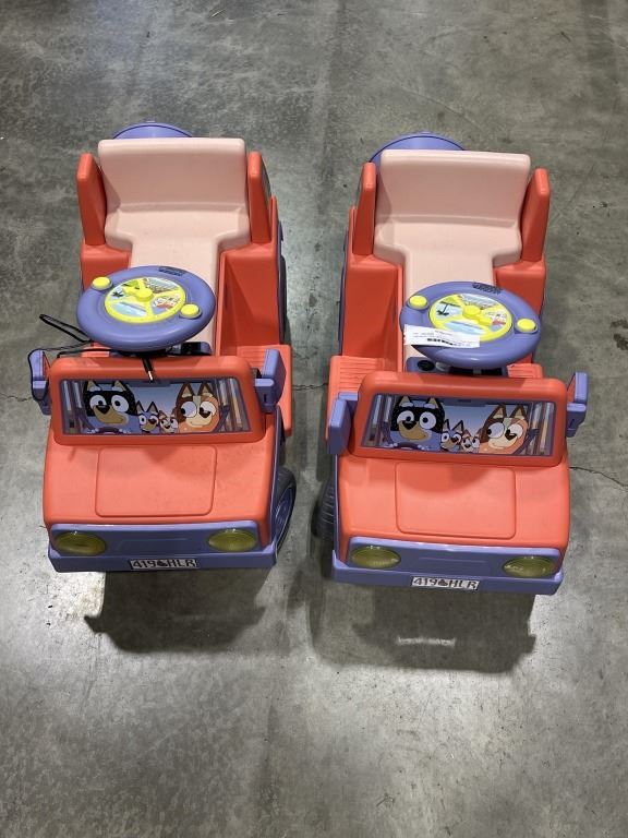 TWO BLUEY RIDE ON ELECTRIC TOYS WITH ONE CHARGER ONE IS WORKING ONE HAS NO POWER