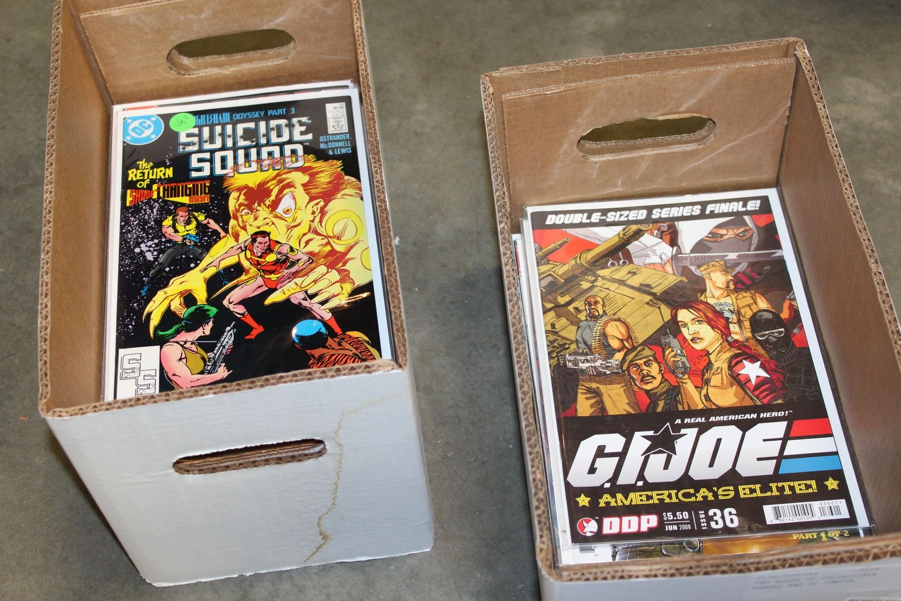 TWO BOXES OF COLLECTIBLE MARVEL AND DC COMICS
