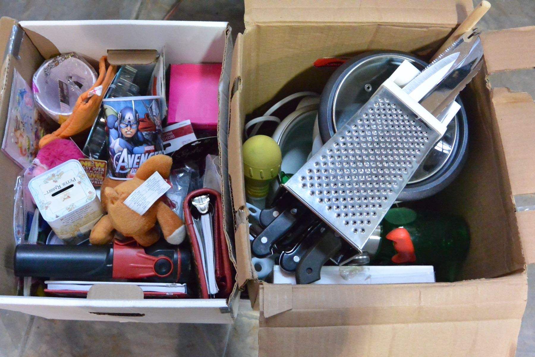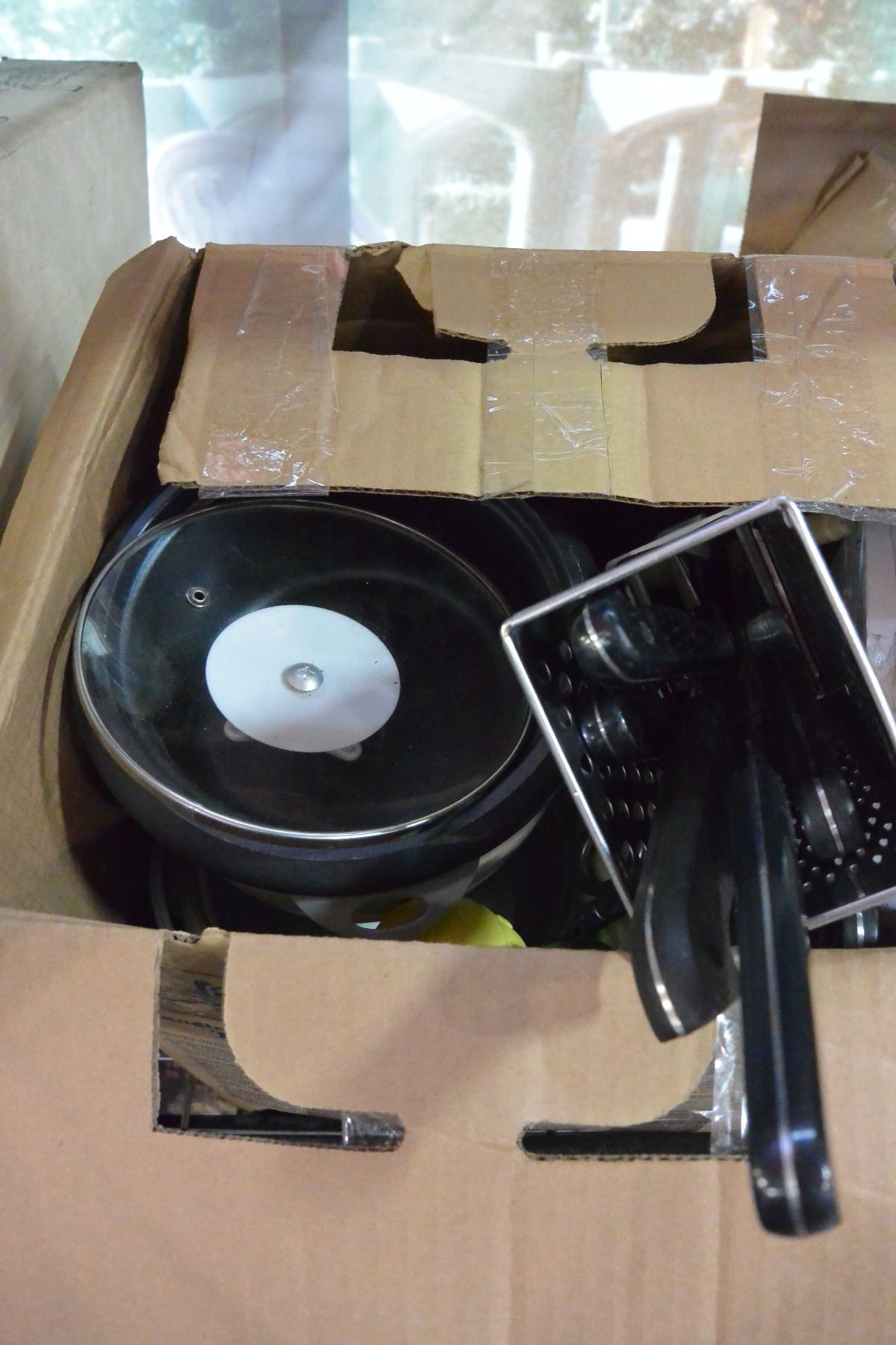 TWO BOXES OF CROCK POTS AND ESTATE GOODS