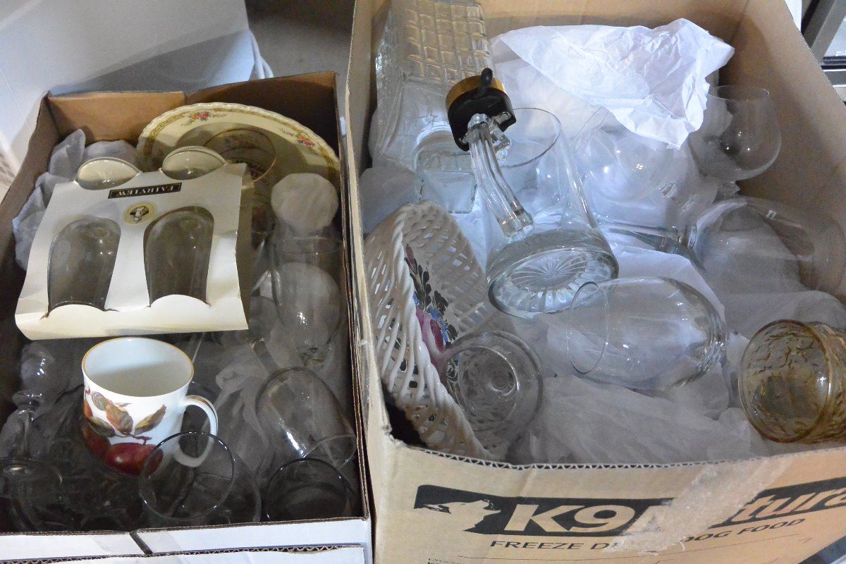 TWO BOXES OF ESTATE STEMWARE AND BAR ITEMS