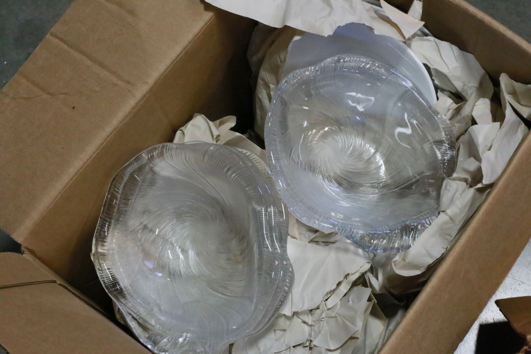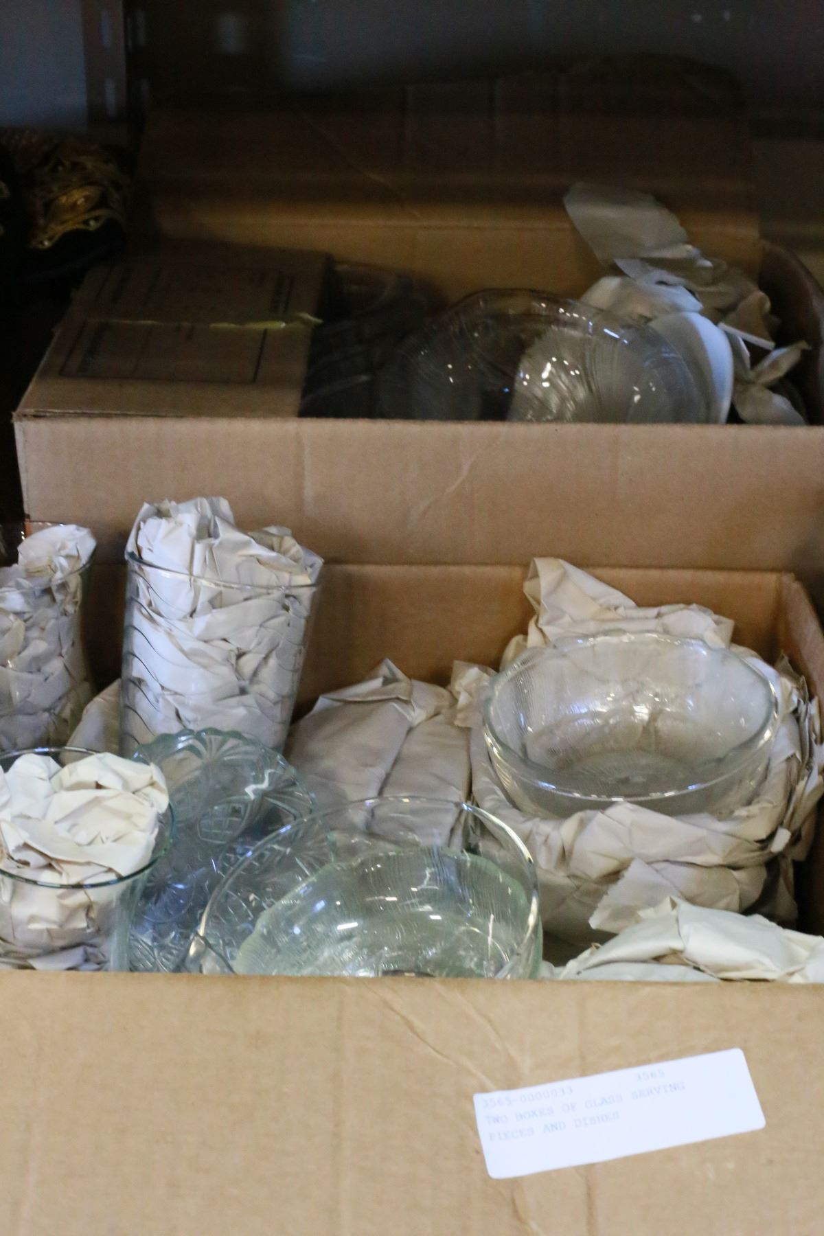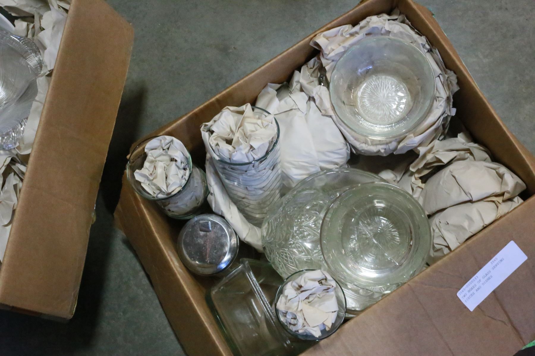 TWO BOXES OF GLASS SERVING PIECES AND DISHES