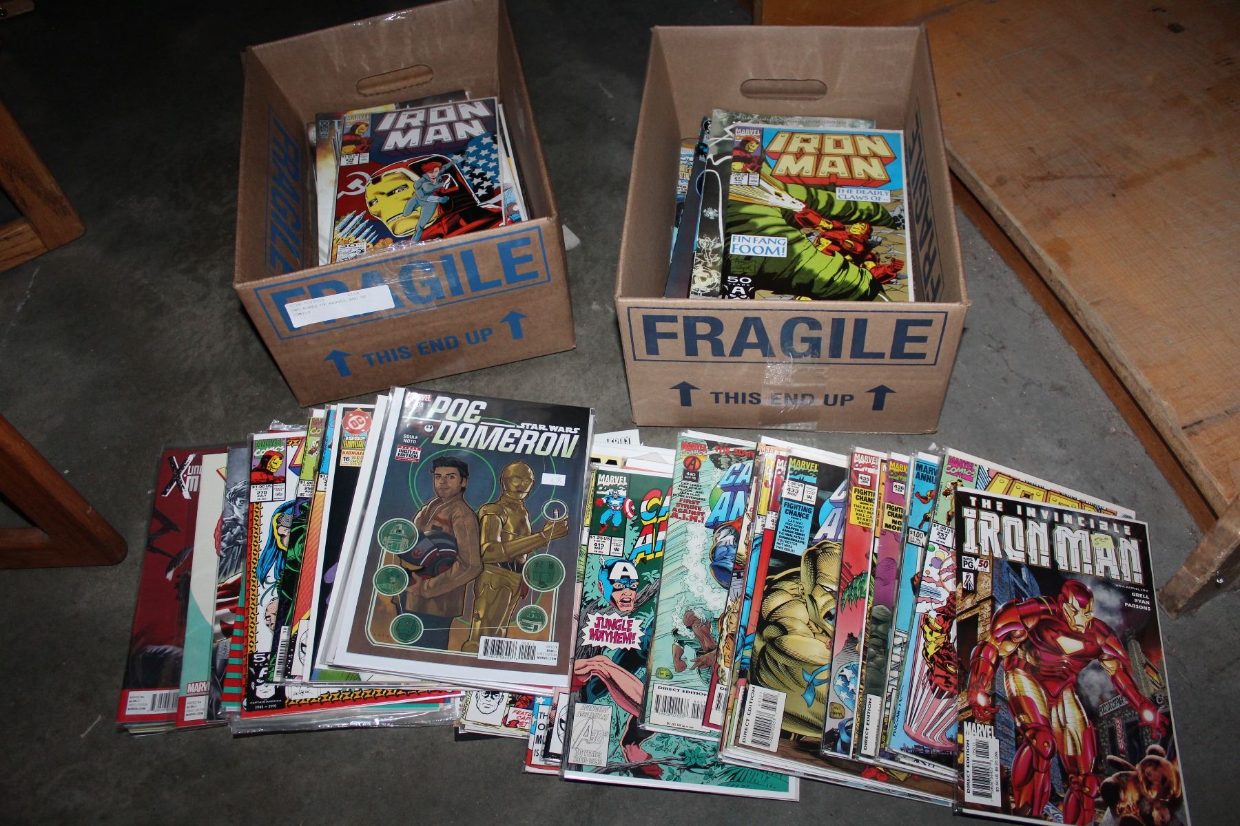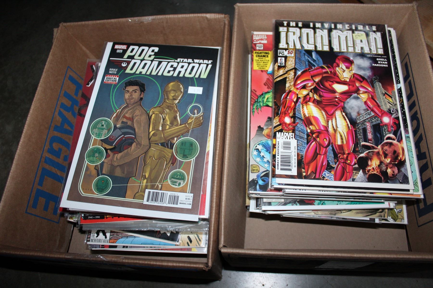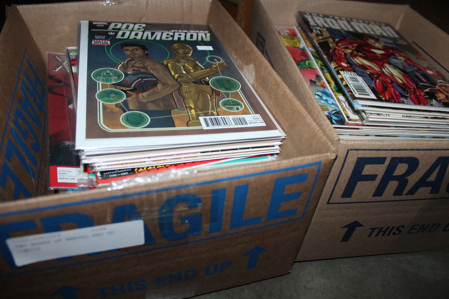 TWO BOXES OF MARVEL AND DC COMICS