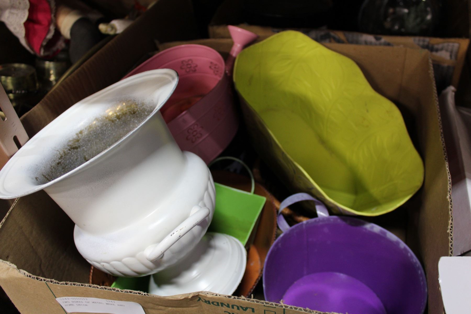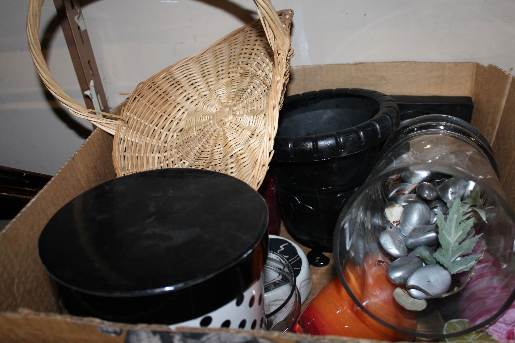 TWO BOXES OF METAL WARE AND HOME DECOR