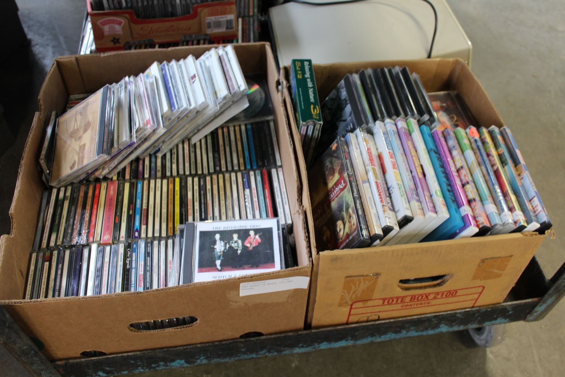 TWO BOXES OF MUSIC CDS AND MOVIES