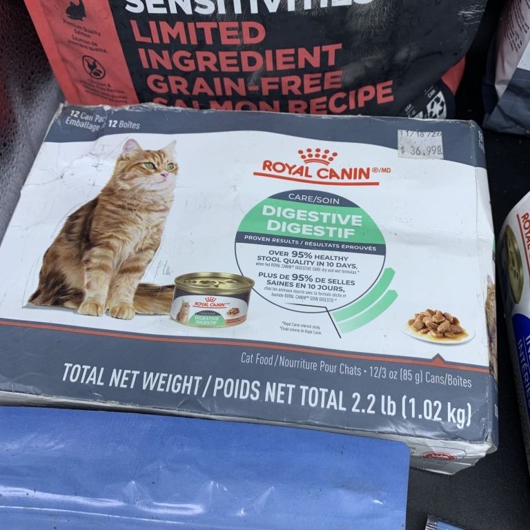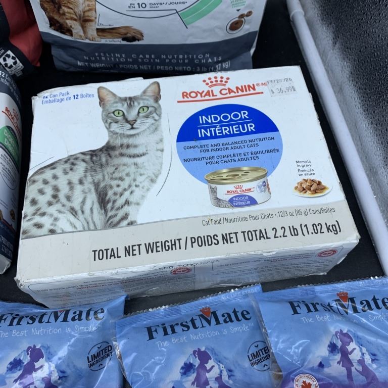 TWO BOXES OF ROYAL CANIN WET CAT FOOD, TWO BAGS OF ROYAL CANIN AND GO SOLUTIONS DRY CAT FOOD, PACIFI