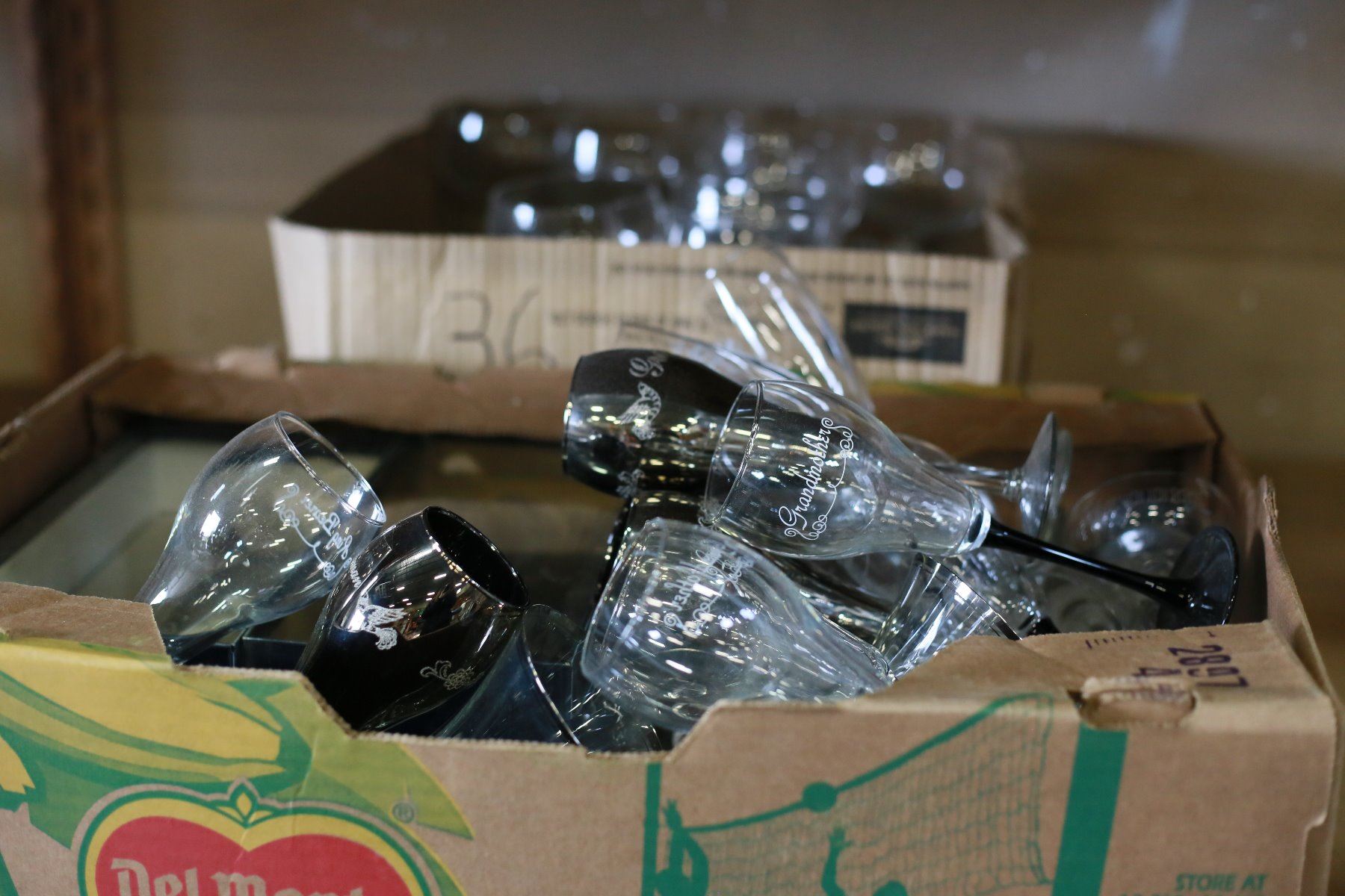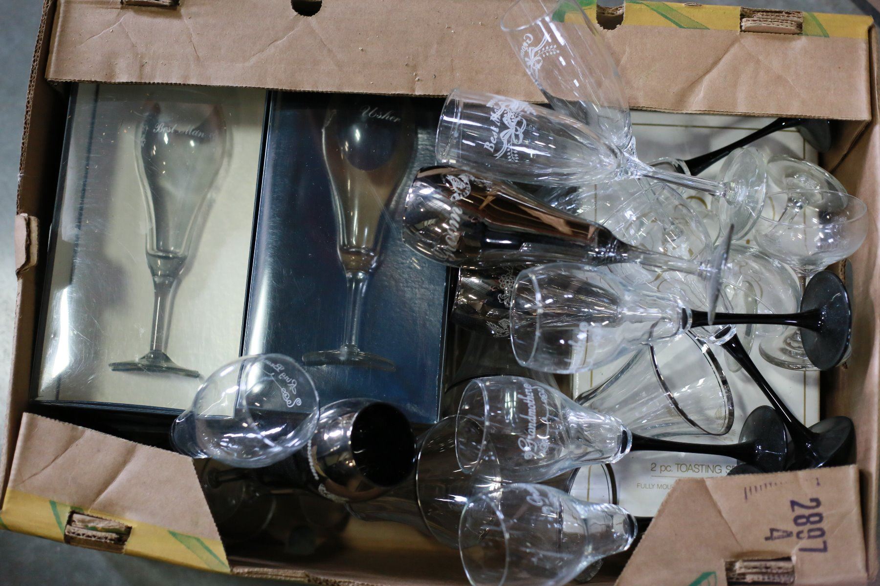 TWO BOXES OF WEDDING GLASSES AND STEMWARE