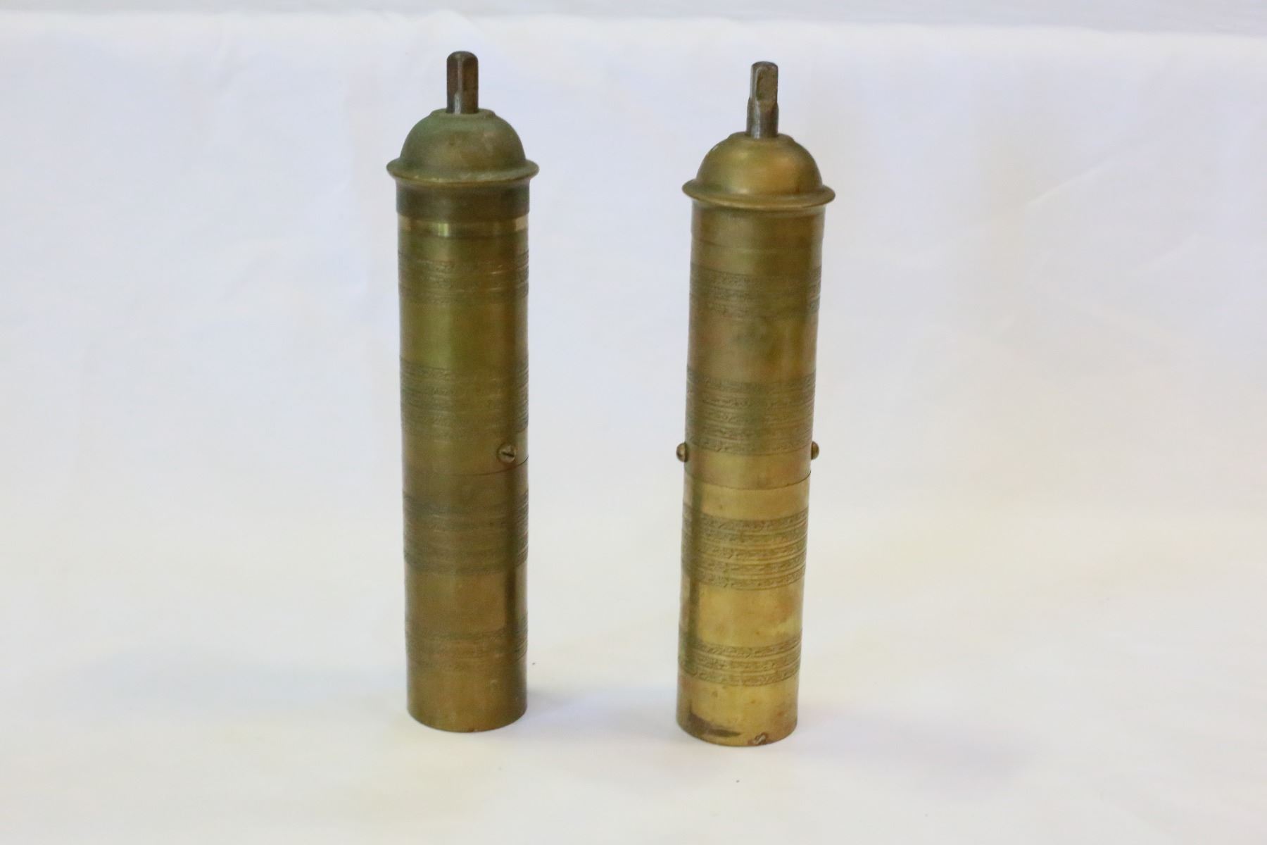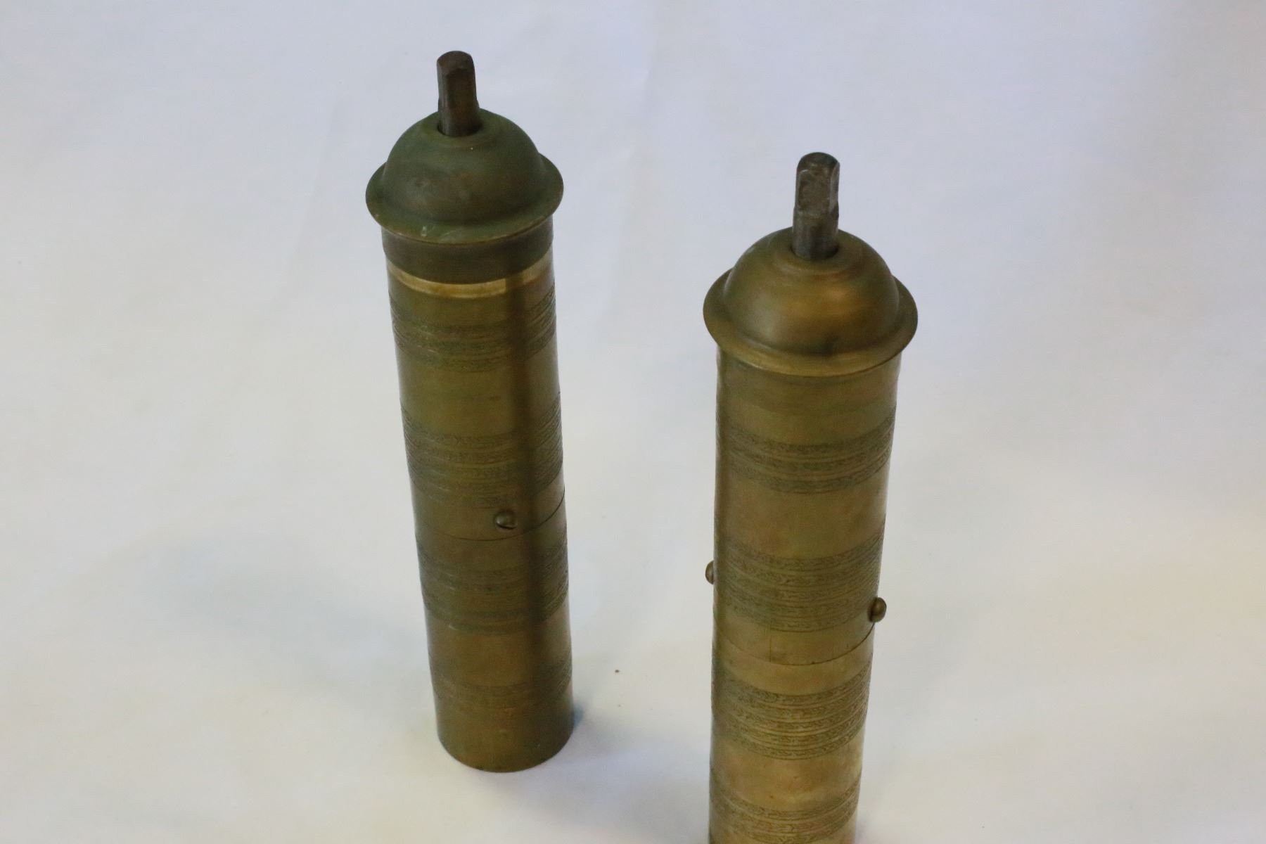 TWO BRASS TURKISH COFFEE GRINDERS