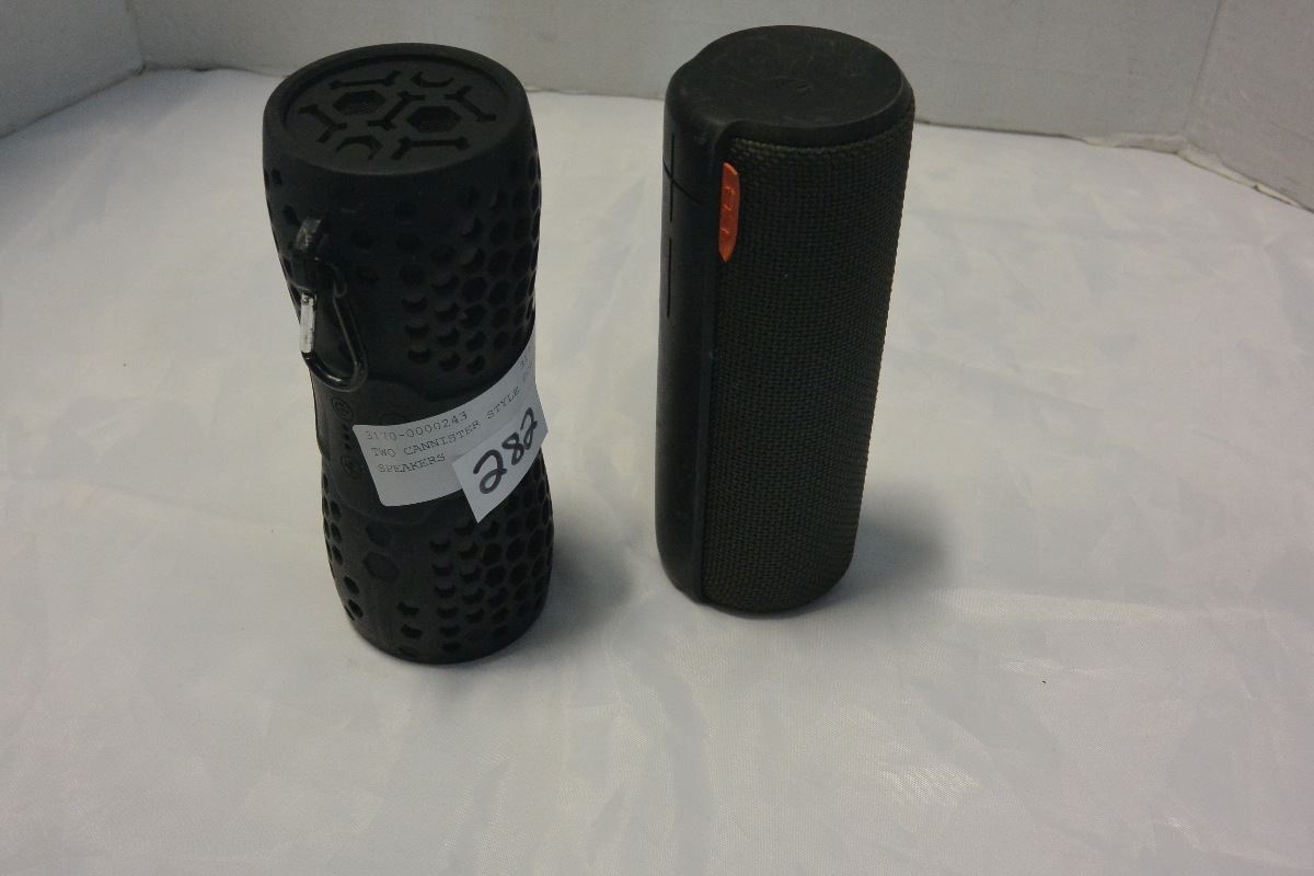 TWO CANNISTER STYLE PORTABLE SPEAKERS