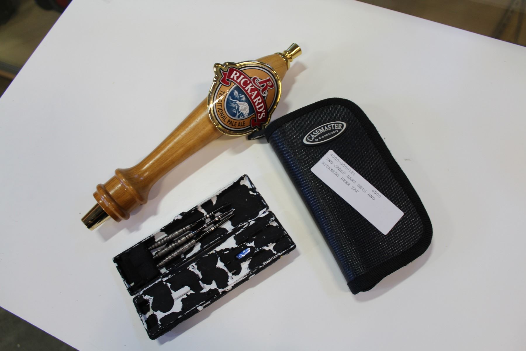 TWO CASED DART SETS AND RICKARDS BEER TAP
