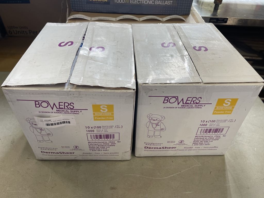 TWO CASES OF SIZE SMALL BOWERS POWDER FREE DISPOSABLE GLOVES