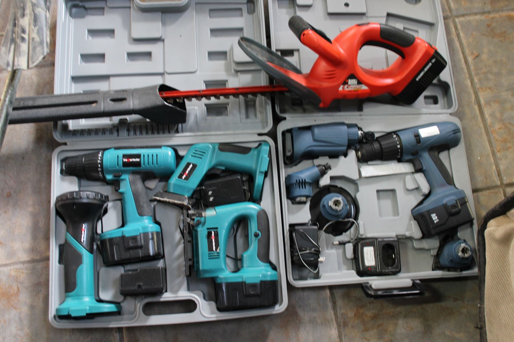 TWO CORDLESS DRILL SETS AND ELECTRIC CHAINSAW