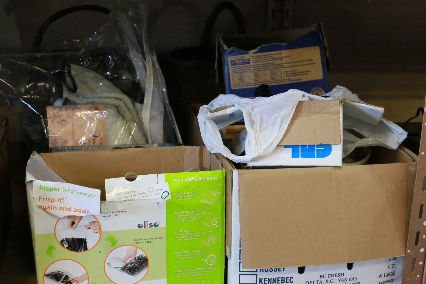 TWO CORDLESS PHONES FOOD SAVER AND BOX MISC HOSUEHOLD ITEMS