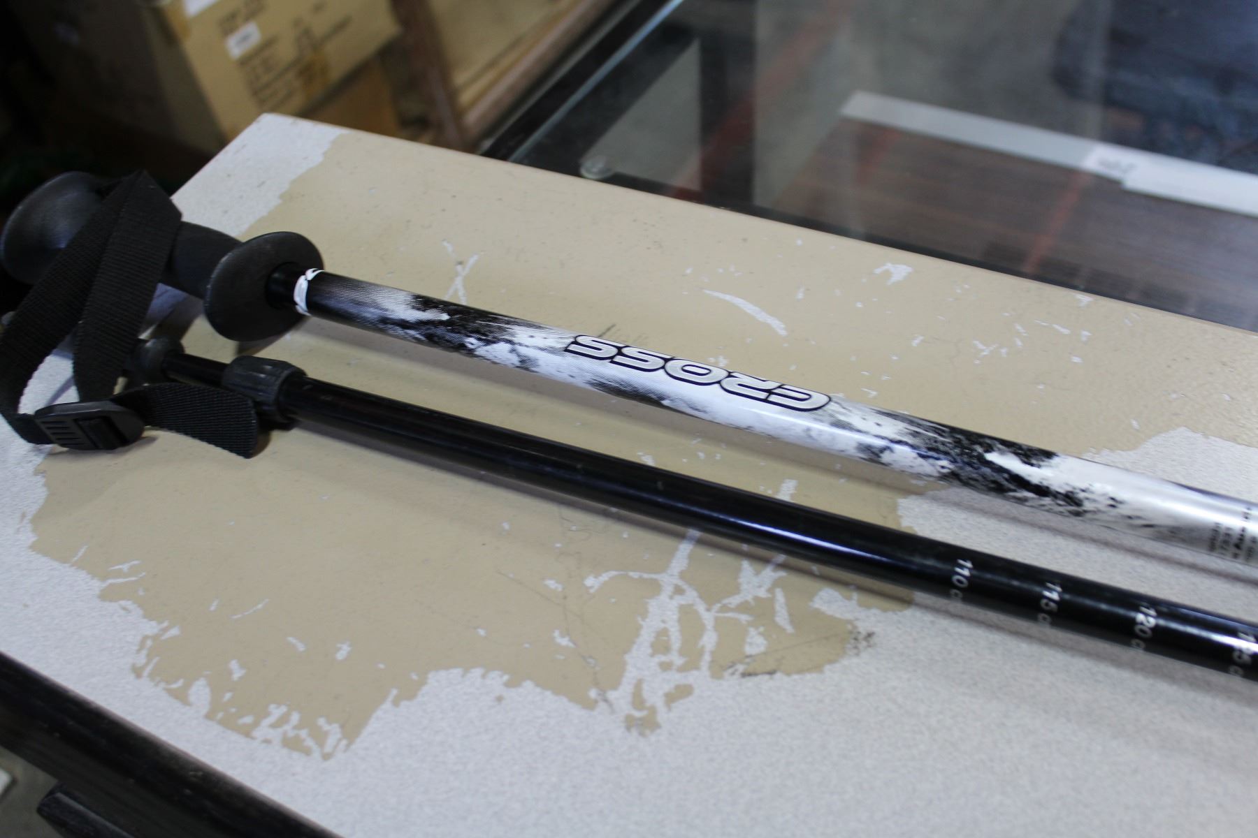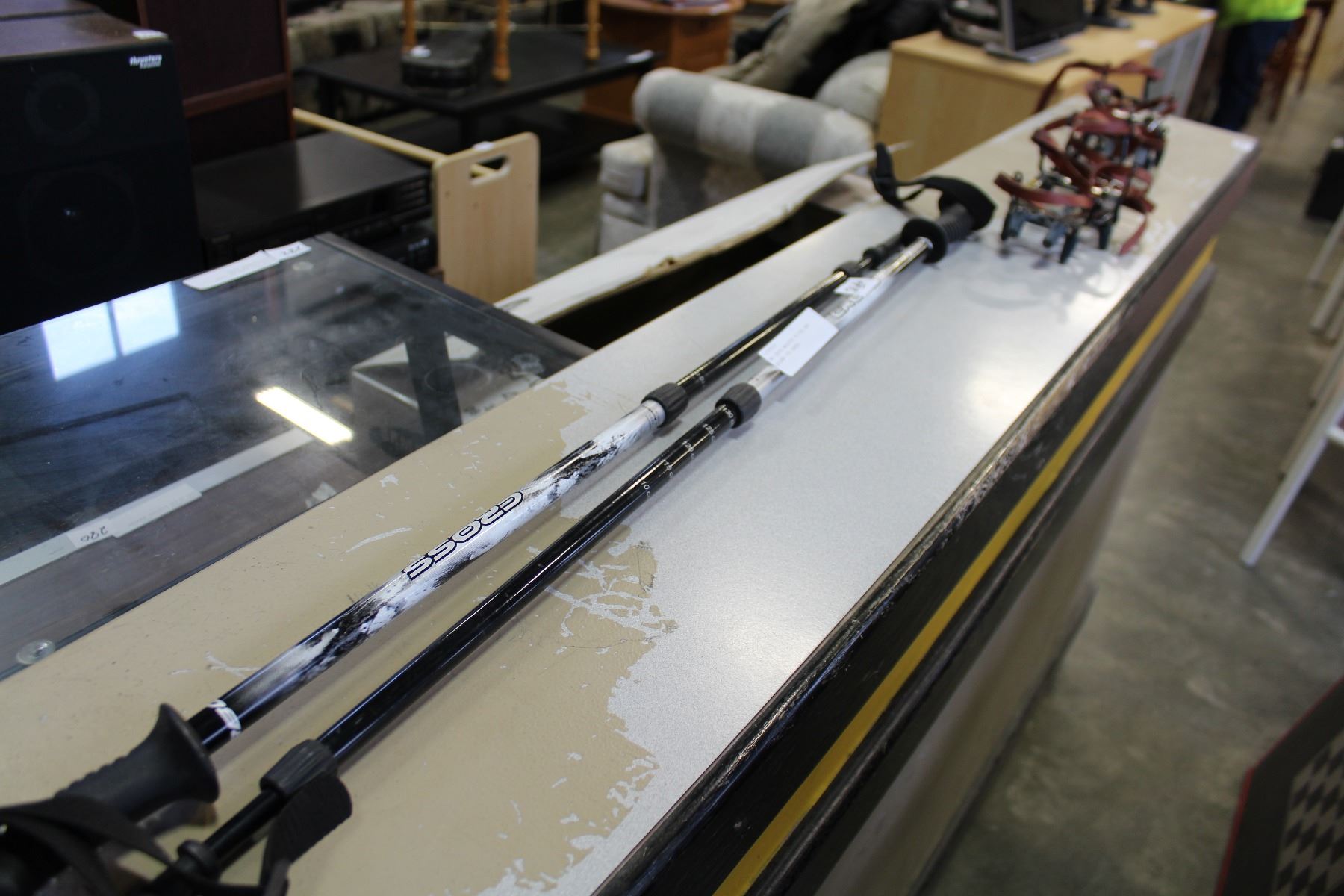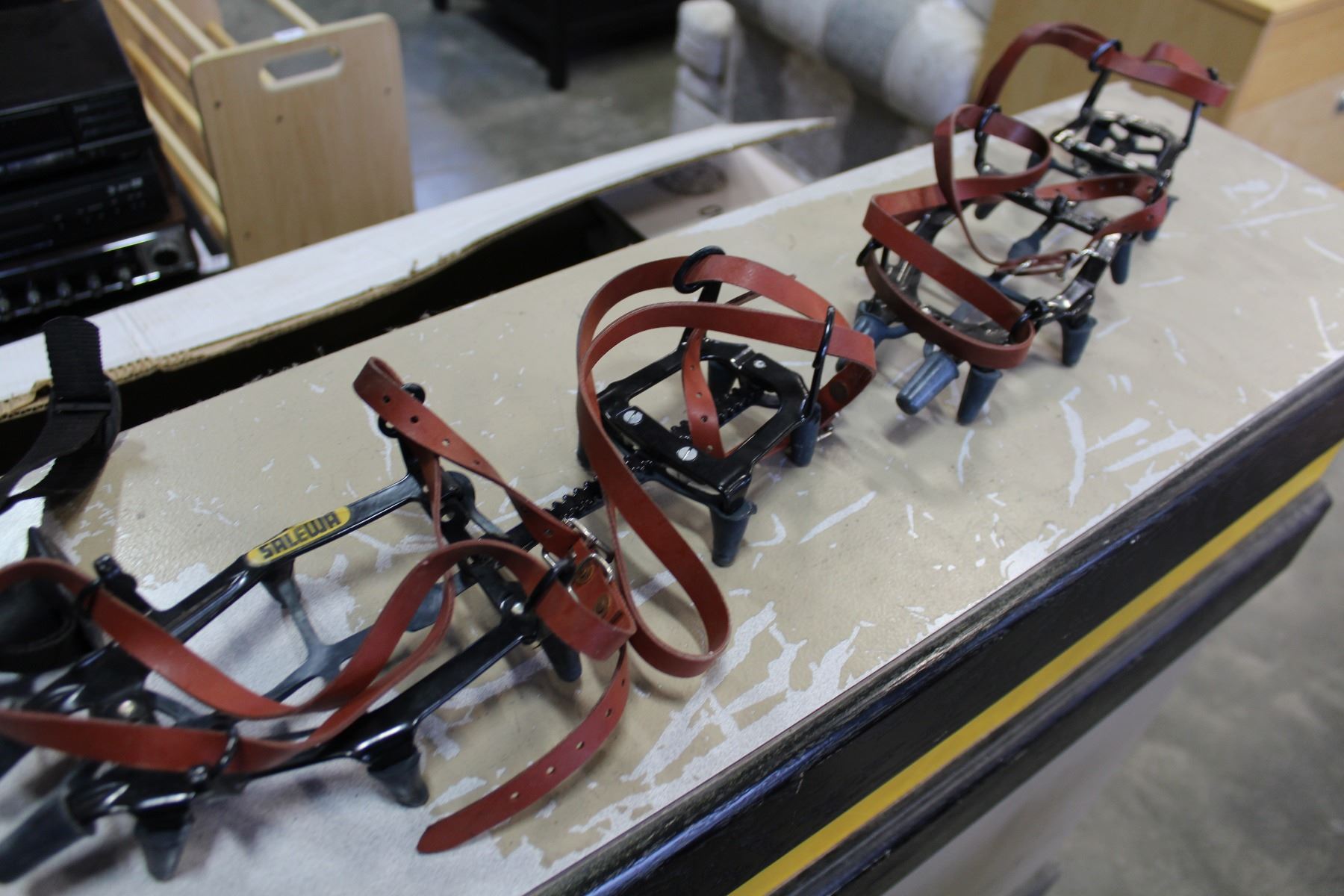 TWO CROSS WALKING STICKS AND SALEWA ICE SHOES