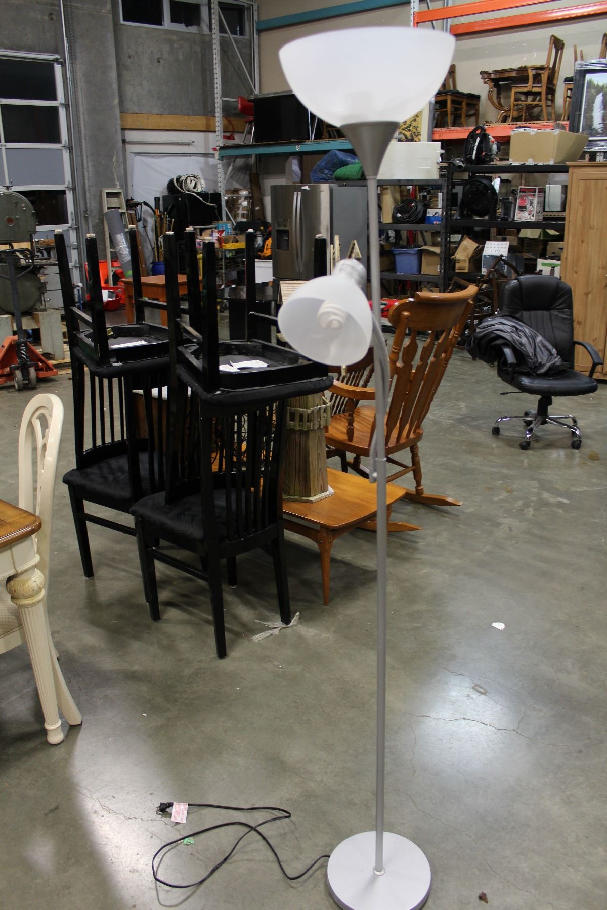 TWO GREY FLOOR LAMPS WITH FEXIBLE SPOT LIGHTS