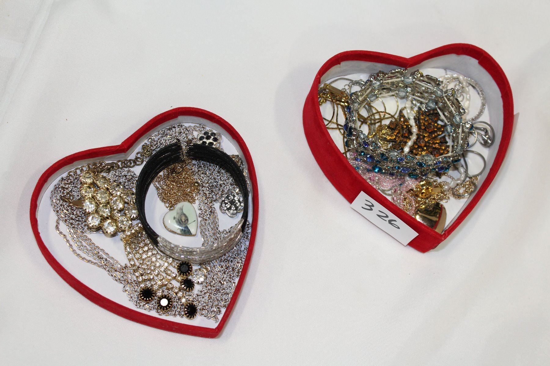 TWO HEART BOXES WITH RHINESTONE JEWELLRY