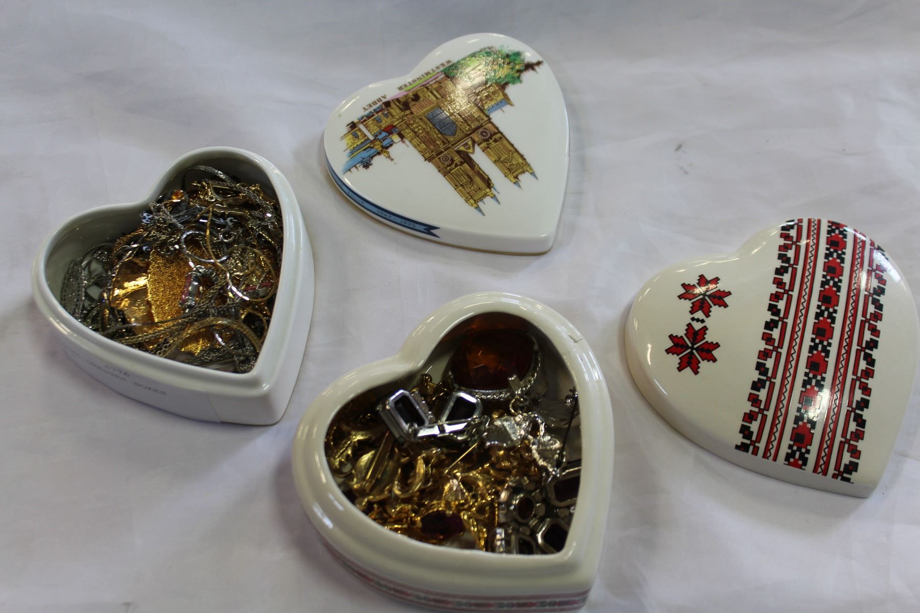 TWO HEART SHAPE DRESSER BOXES WITH CONTENTS