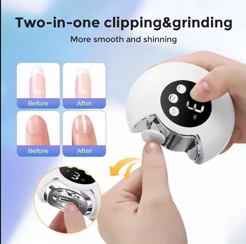 TWO-IN-ONE ELECTRIC NAIL CLIPPERS AND FILE, USB RECHARGEABLE, THREE-SPEED ADJUSTABLE, BUILT-IN HEAD,